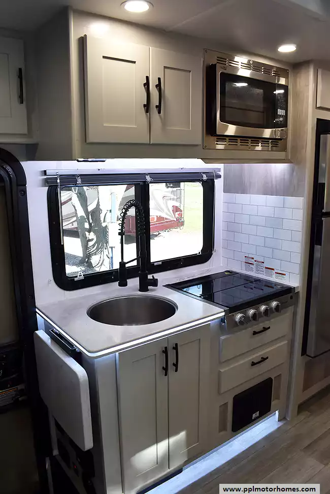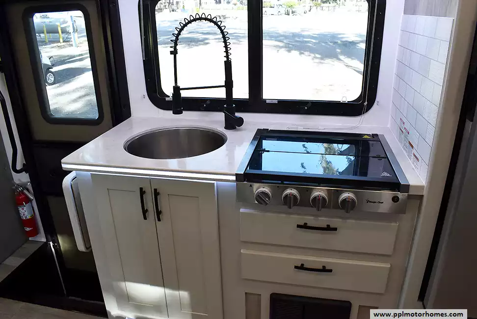 This 2024 Dynamax 3 24RW has a 3.0 V6 Mercedes Benz Engine On a Sprinter Chassis, 2 Slide-outs, Onan Propane Generator, 1 Ducted Air Conditioner, Double Door 110v/12v Norcold Refrigerator, Automatic Main Awning And Slide Awning, Backup Camera, GPS System, Solar Panel, Heated Tanks, Satellite Receiver, Outside Speakers, 2 TVs, Outside Shower, Convection Microwave, 2 Burner Range