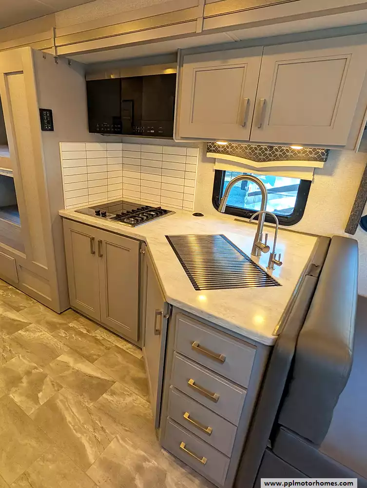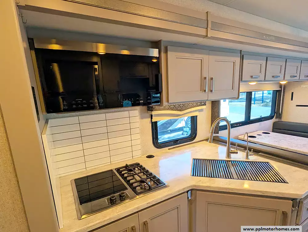 (Floor plan is NOT drawn to scale. Length of vehicle is approximate. Buyer is responsible for verifying actual length. PPL Motor Homes compiled this list of features, specifications, equipment and options as a guide. No representation or warranties, either express or implied, are made as to the accuracy of the information herein. Please verify for yourself all items listed before purchase.)