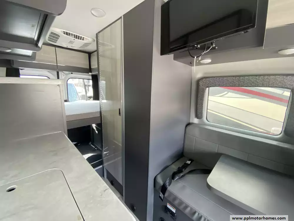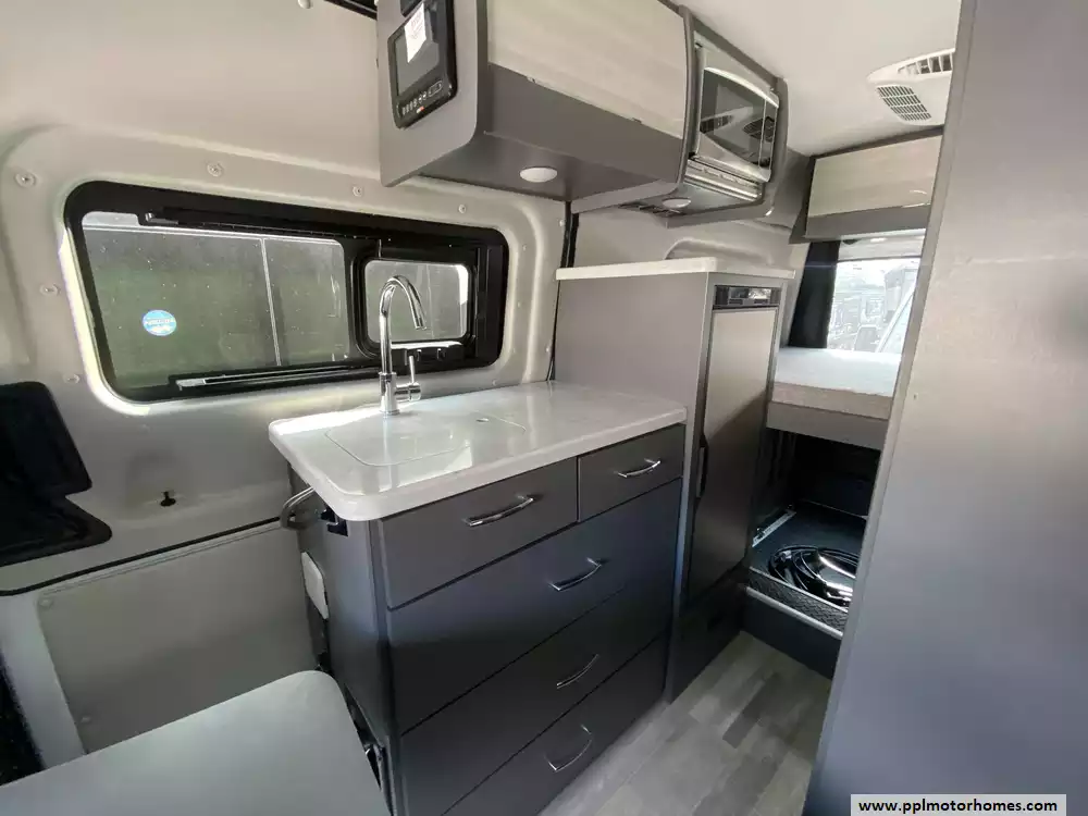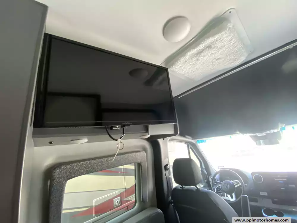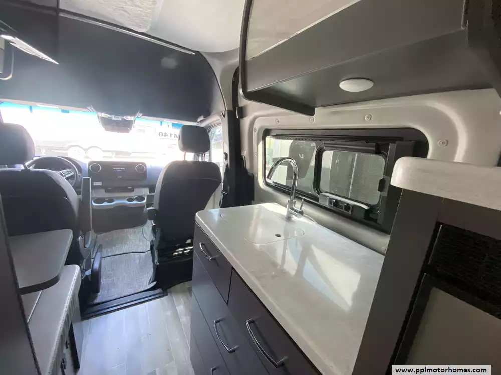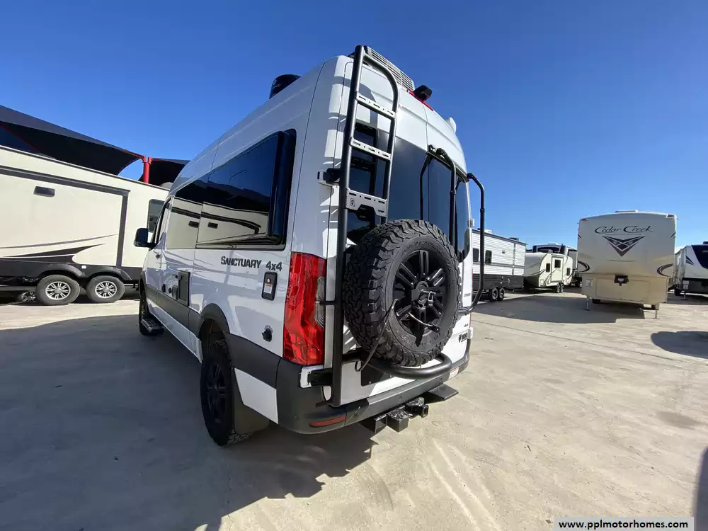This 2024 Sprinter Sanctuary 19L has a 1 Ducted Air Conditioner, Single Door 12v Norcold Refrigerator, Backup Camera, Solar Panel, Heated Tanks, TV, Outside Shower, Microwave, Single Burner Induction Cook Top, 200 Watt Solar Charging System