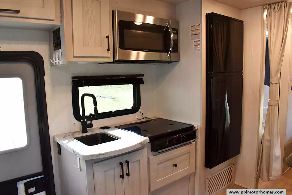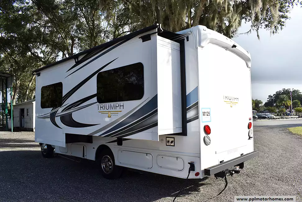 This 2025 Triumph Sport 24TS has a V8 Ford Engine On a Ford 350 Chassis, 1 Slide-out, Gas Generator, 1 Ducted Air Conditioner, Double Door 12v Everchill Refrigerator, Automatic Main Awning And Slide Awning, Backup Camera, GPS System, Satellite Receiver, Outside Speakers, TV, Outside Shower, Convection Microwave, 3 Burner Range