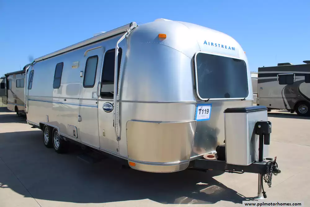 Standard amenities often include air conditioning, a furnace, microwave, refrigerator, three-burner stove, and an awning, along with dual propane tanks and electric drum brakes for reliable towing. With its riveted aluminum shell, efficient use of space, and solid build quality, the Safari 27 remains a popular choice for travelers seeking a blend of vintage Airstream styling and practical functionality for extended trips or weekend getaways.