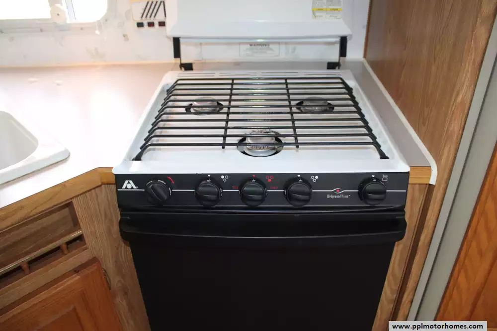 The large slide-out significantly expands the living and dining area, typically featuring a sofa and dinette, while the front kitchen provides generous counter space, a three-burner range with oven, microwave, and refrigerator. In the rear, a private bedroom with a queen bed and ample storage complements a roomy bathroom with a corner shower and wardrobe space. With features like ducted air conditioning, forced-air heating, and abundant interior and exterior storage, the 30FKS balances comfort and practicality, making it a reliable choice for both weekend camping and longer-term travel. This Mobile Scout, due to age, is being sold entirely as is.