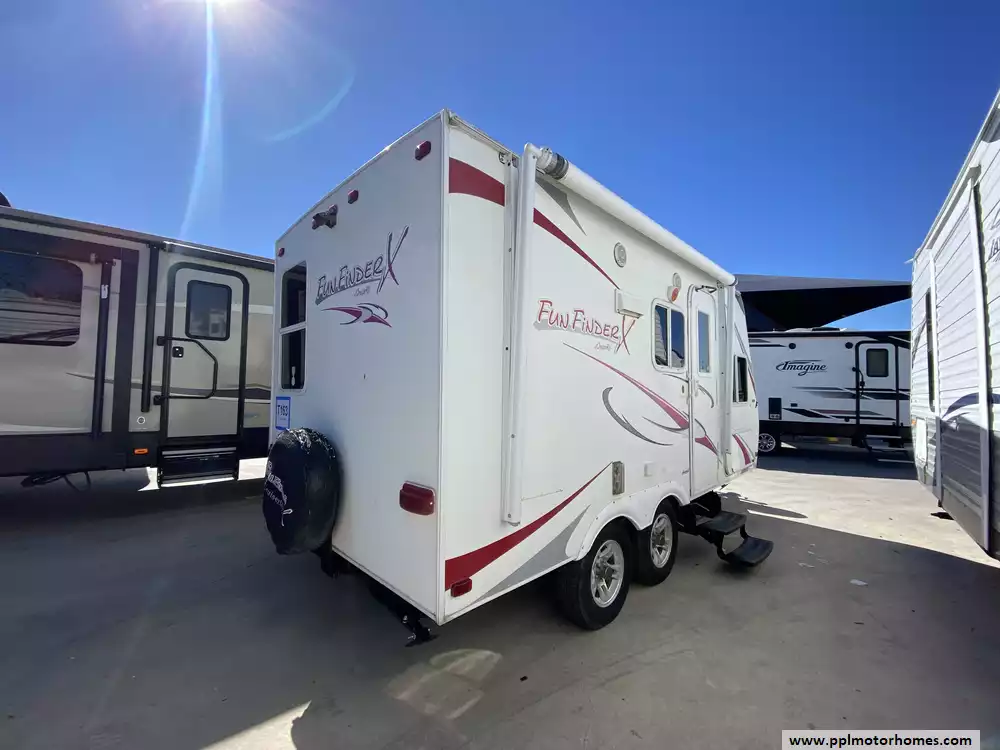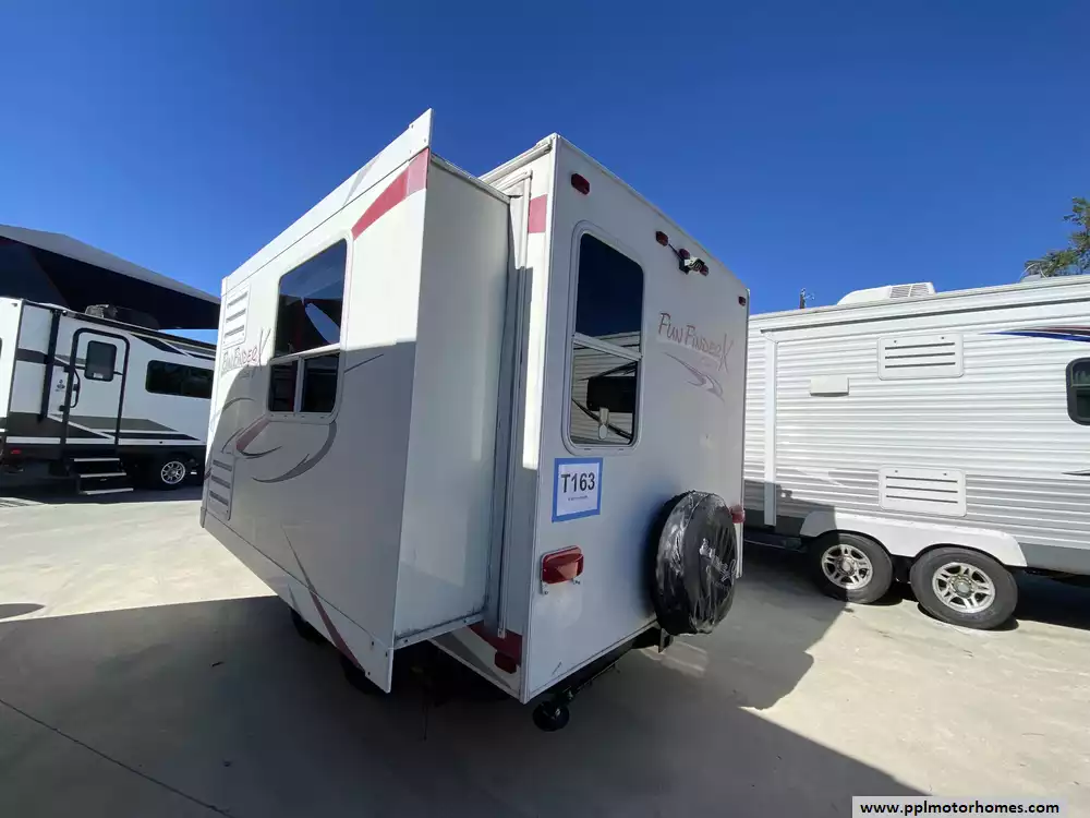 This 2011 Funfinder 189FBS has a 1 Slide-out, 1 Non-Ducted Air Conditioner, Double Door Gas/110v Dometic Refrigerator, Automatic Main Awning, Satellite Dish, Outside Speakers, TV, DVD Player, Outside Shower, Microwave, 2 Burner Range