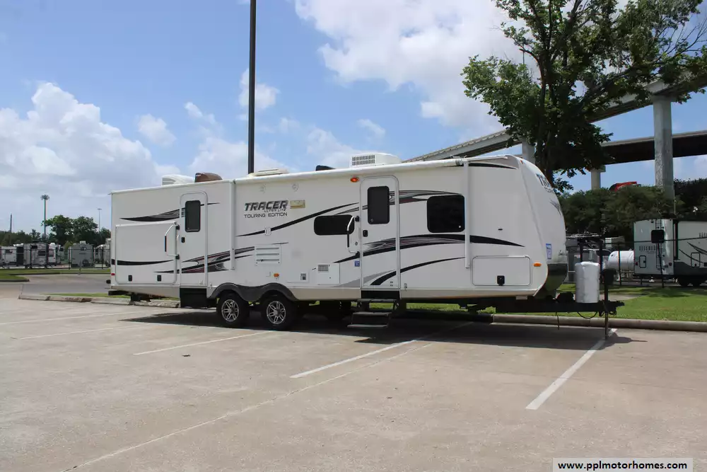 This 2012 Tracer Executive 3150BHD is a spacious and family-friendly travel trailer designed for comfort and convenience. Comforts Include...Electric Tongue Jack, 2 Slide-outs, 1 Non-Ducted And 1 Ducted Air Conditioner, Double Door Gas/110v Dometic Refrigerator, Automatic Main Awning, Outside Speakers, 2 TVs, DVD Player, Outdoor Grill, Outdoor Kitchen, Microwave, 3 Burner Range, and Oven. With its versatile layout and ample sleeping capacity, it's well-suited for extended trips or family adventures.