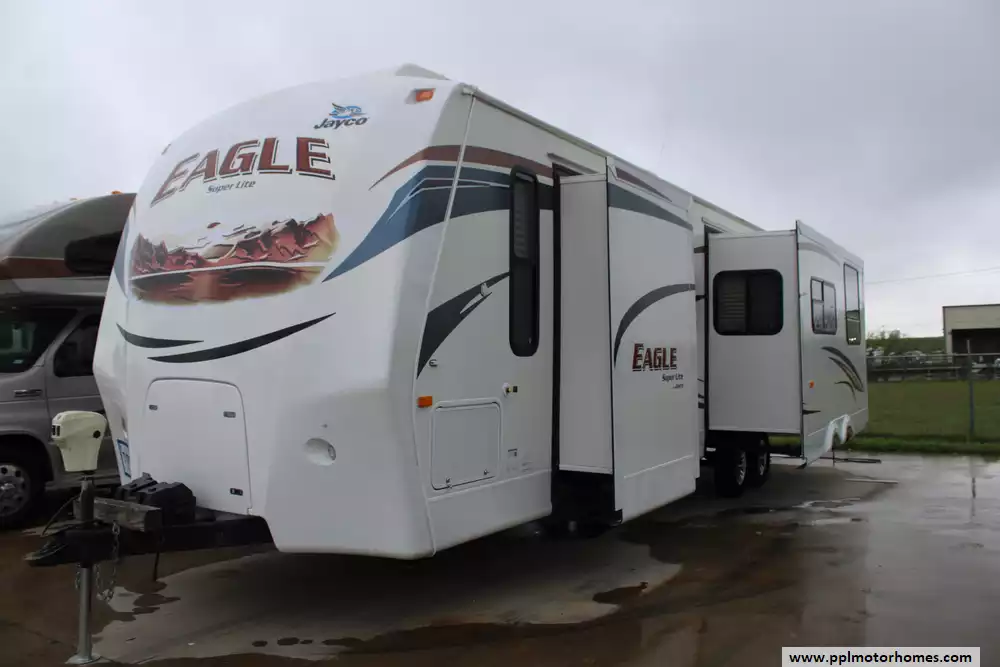 This 2012 Jayco Eagle 316RKDS Features... An Electric Tongue Jack, 2 Slide-Outs, MORryde "Step Above" Entry Steps, "Glacier Package", Maxxair Vent Covers, MORryde CRE 3000 Suspension System, 4-Point Electric Stabilizing System, 1 Non-Ducted And 1 Ducted Air Conditioner, Double Door Gas/110v Norcold Refrigerator, Automatic Main Awning, Outside Speakers, TV, DVD Player, Outside Shower, Microwave, 3 Burner Range, Oven, Walk-Around Queen Bed, And More! Ask About PPL's Convenient Financing Options And This Trailer's Eligibility For Protection Plans!