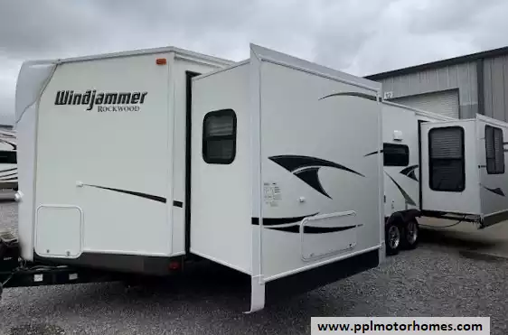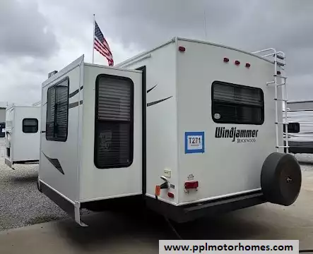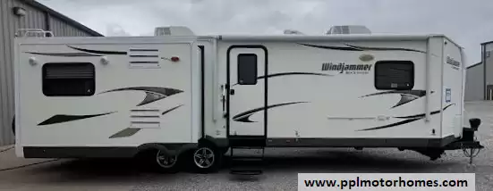 This 2013 Windjammer 3065WA sleeps 4 people and is very spacious on the inside. It has 3 Slide-outs, 2 Ducted Air Conditioners, Double Door Gas/110v Dometic Refrigerator, Automatic Main Awning, TV, Outside Shower, Fireplace, Microwave, 3 Burner Range, Oven
