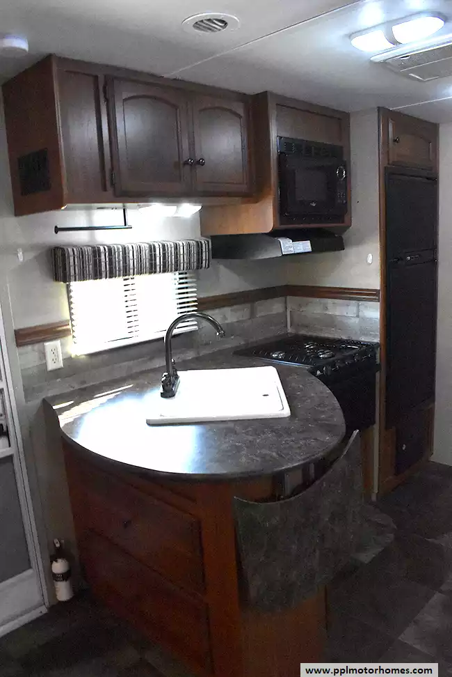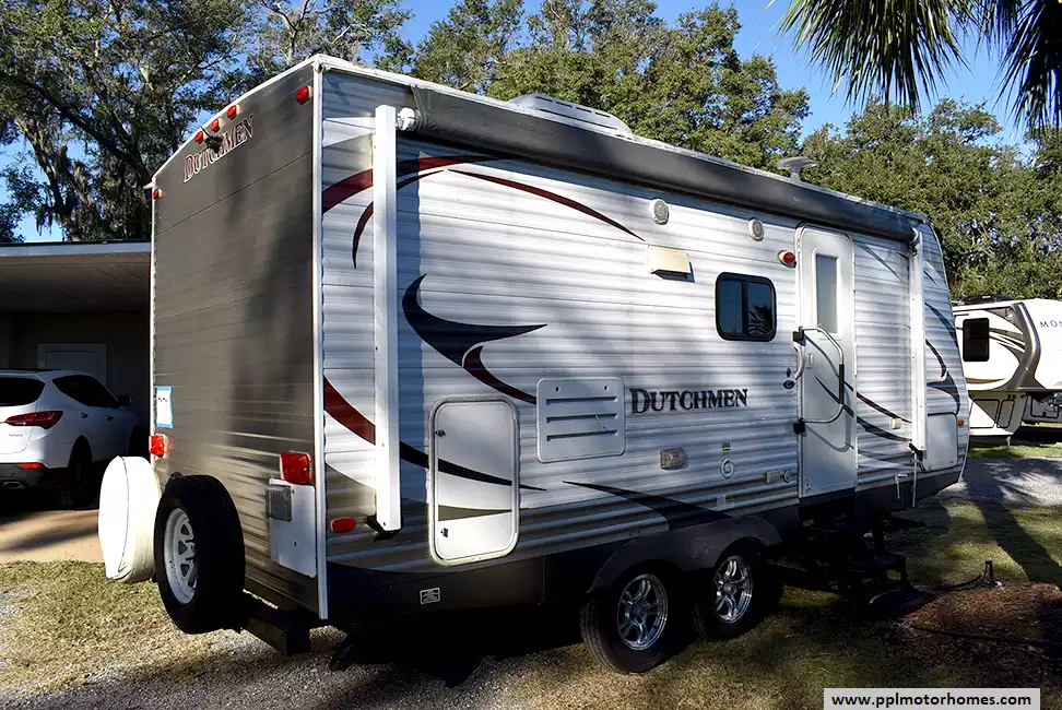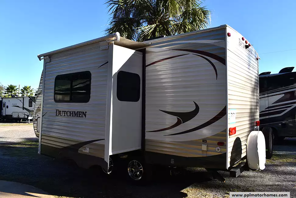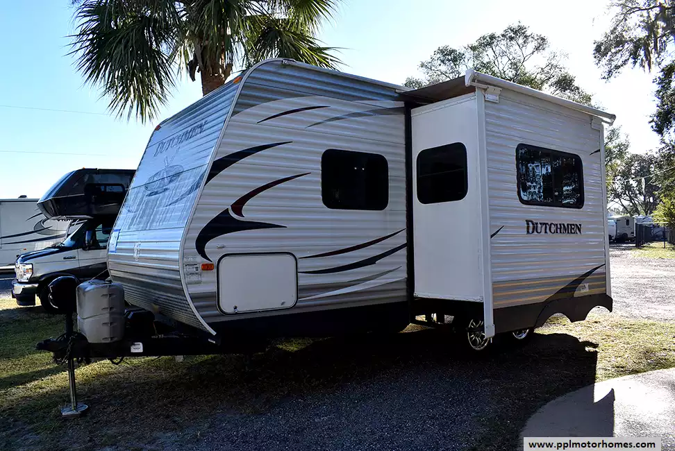 This 2014 Dutchmen 202RBS has an Electric Tongue Jack, 1 Slide-out, 1 Ducted Air Conditioner, Double Door Gas/110v Norcold Refrigerator, Automatic Main Awning And Slide Awning, Outside Speakers, Microwave, 3 Burner Range