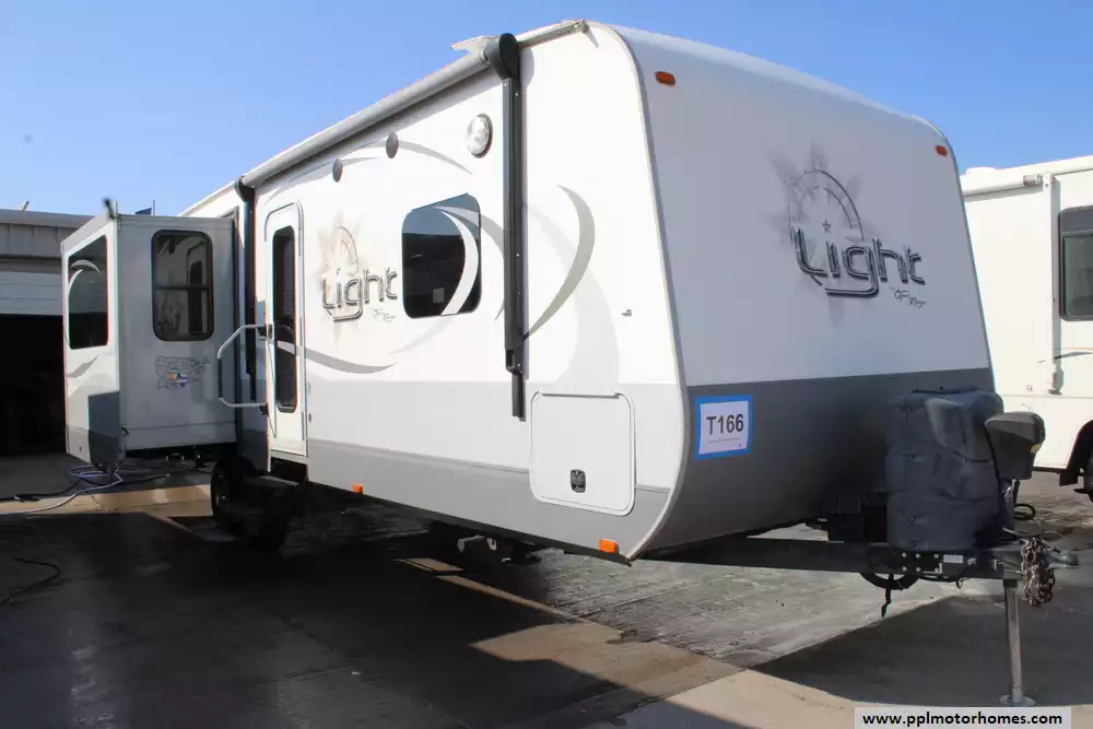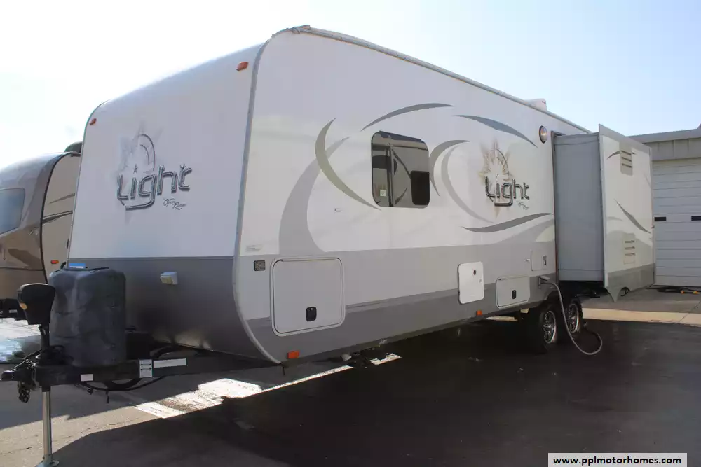 The 2014 Open Range Light 274RLS is a lightweight travel trailer with dual slide-outs that expand the rear living space, making it comfortable for up to four people. Built on a 100" wide-body frame with features like air conditioning, a 30,000 BTU furnace, and ample freshwater (50 gal), gray (62 gal) and black (31 gal) tanks, it offers practical utilities for extended trips. Inside, the layout typically includes a private front bedroom with a queen bed, a central bathroom, and a combined kitchen/living area with slide-out seating and entertainment space, often complemented by conveniences like an entertainment center and plenty of storage. The Light series emphasizes towability and livability with standard travel-friendly equipment and a rear living design ideal for families or couples who enjoy comfortable camping.