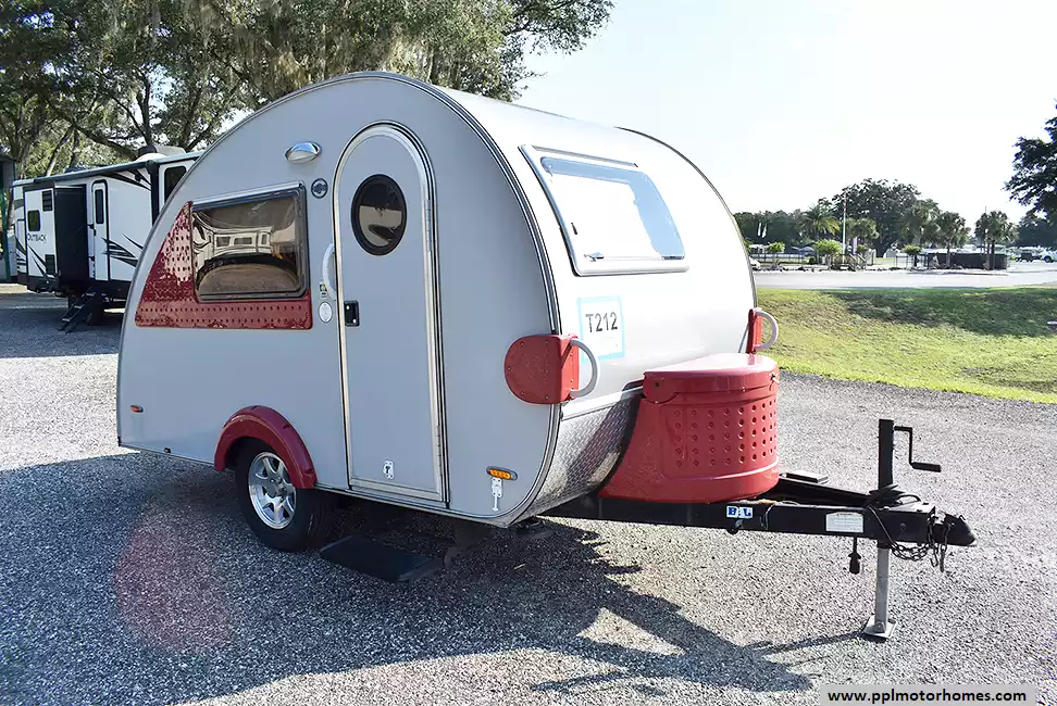 This 2014 T@B Cs-S Wet Bath BASIC has a 1 Non-Ducted Air Conditioner, Single Door Gas/110v/12v Norcold Refrigerator, Outside Entertainment System, TV, Outdoor Kitchen, 2 Burner Range