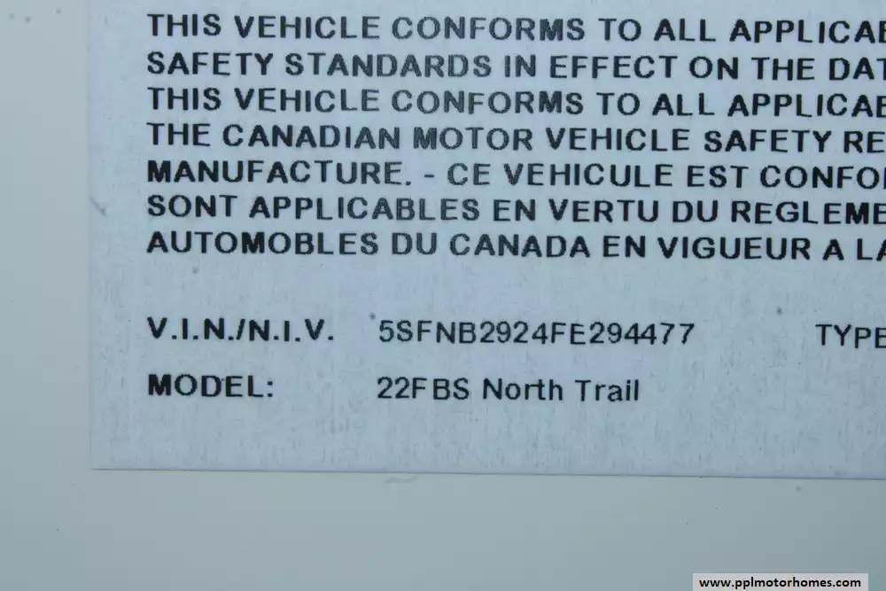 This 2015 North Trail 22FBS is a midsize, family-friendly travel trailer designed for weekend adventures or extended camping trips. Features Include...1 Slide-out, 1 Ducted Air Conditioner, Double Door 110v Norcold Refrigerator, Automatic Main Awning, Outside Speakers, TV, Outside Shower, Microwave, 3 Burner Range, and Oven.