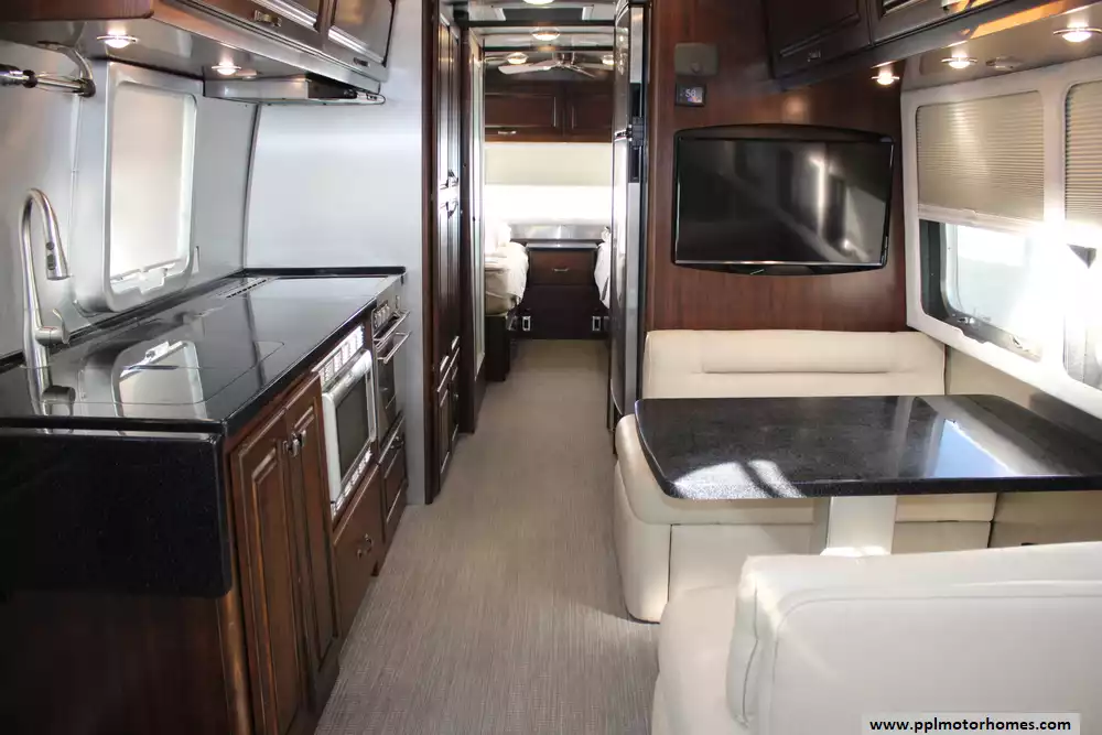 The 2016 Airstream Classic 30 Twin is a premium aluminum travel trailer that takes the flagship Classic 30 layout and swaps the usual queen bedroom for two twin beds in the rear, making it ideal for couples who prefer separate sleeping spaces or flexibility in sleeping arrangements. At roughly 31' 3" long with a robust 10,000 lb GVWR, it featuresa a dinette with a well-equipped galley kitchen featuring a three-burner cooktop, 9 cu ft refrigerator and slide-out pantry, plus a split bathroom with shower and wardrobe storage. Premium touches include Corian countertops, dual QuietStream air conditioners, USB outlets and LED TV, all wrapped in Airstream's iconic polished aluminum exterior and built with insulated underbelly and quality fixtures for year-round comfort. The front power reclining sofa has been removed in place of large lithium phosphate batteries. This unit also includes the powered "Zip-dee" awning and powered stabilizer jacks.