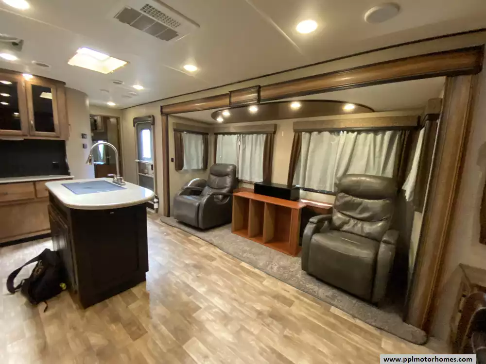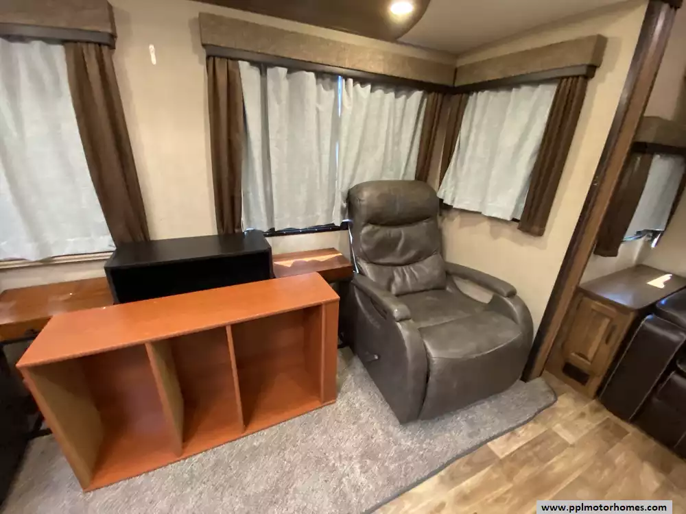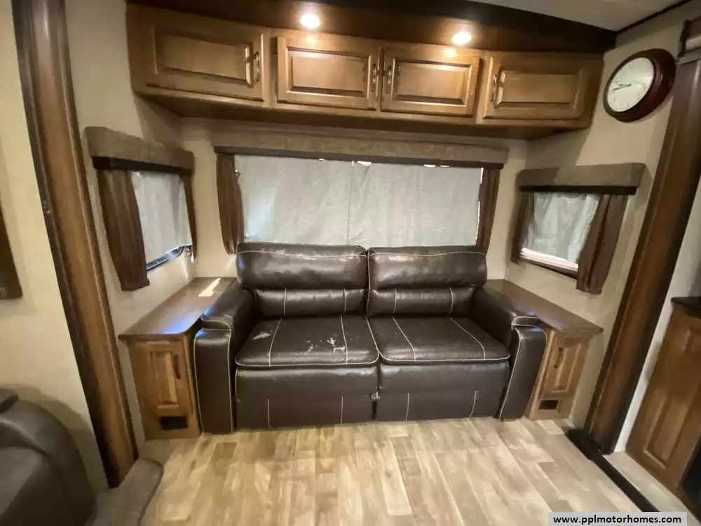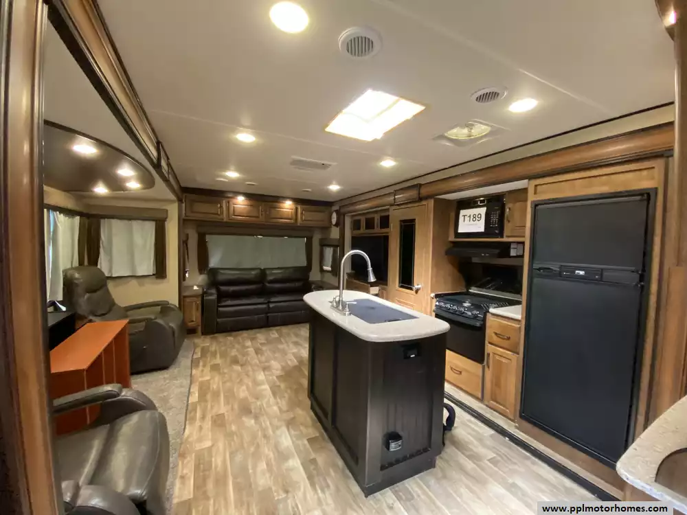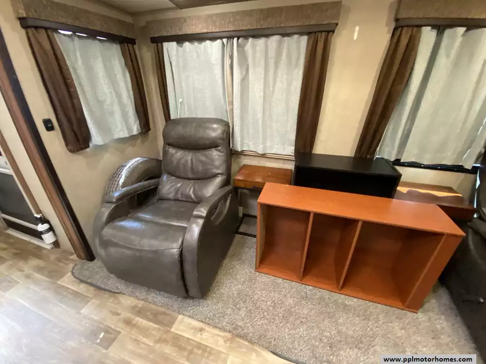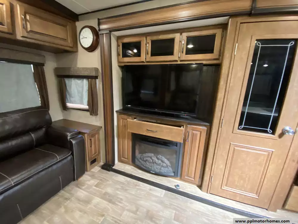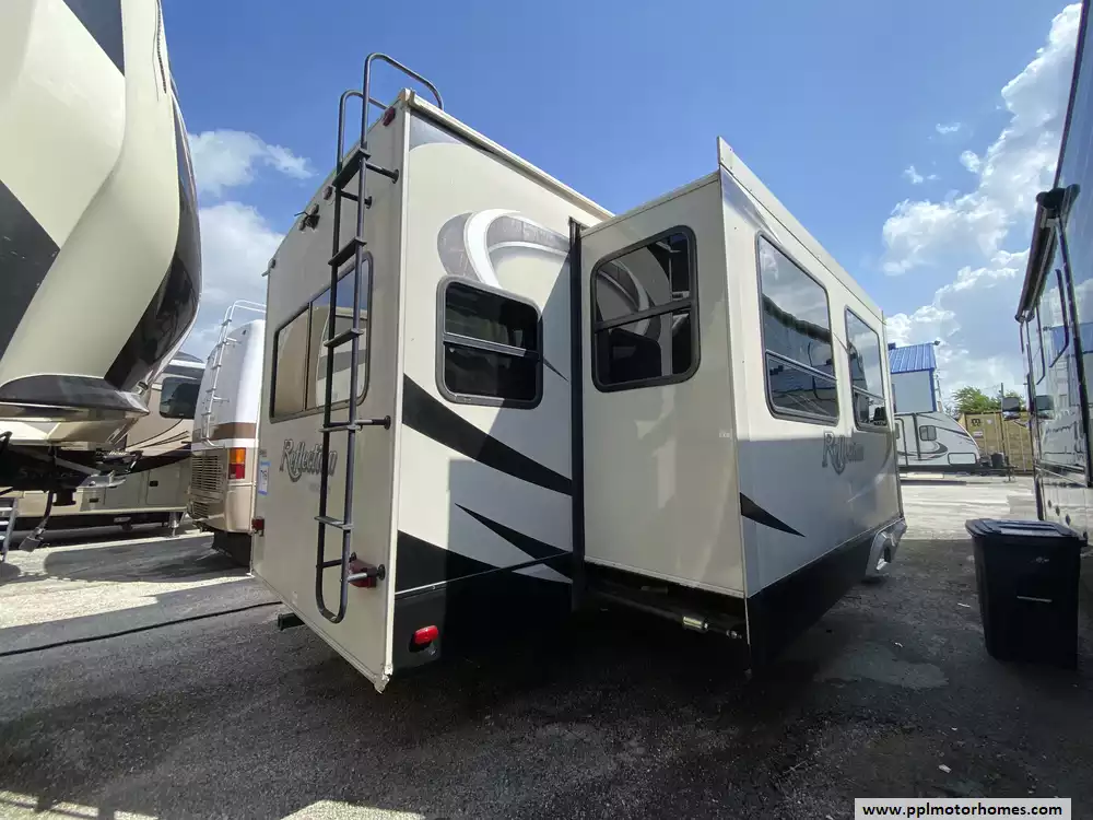 This 2016 Reflection 313RLTS has an Electric Tongue Jack, 3 Slide-outs, 2 Ducted Air Conditioners, Double Door Gas/110v Norcold Refrigerator, Automatic Main Awning, Washer/Dryer Connections, Outside Speakers, 2 TVs, DVD Player, Outside Shower, Fireplace, Microwave, 3 Burner Range, Oven