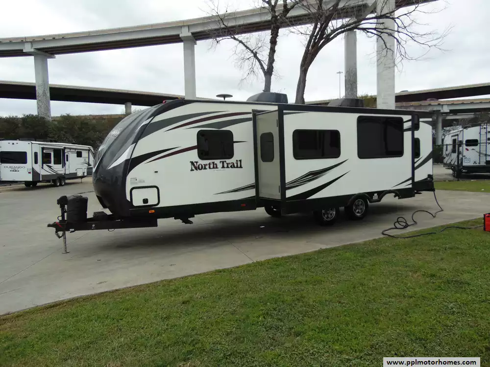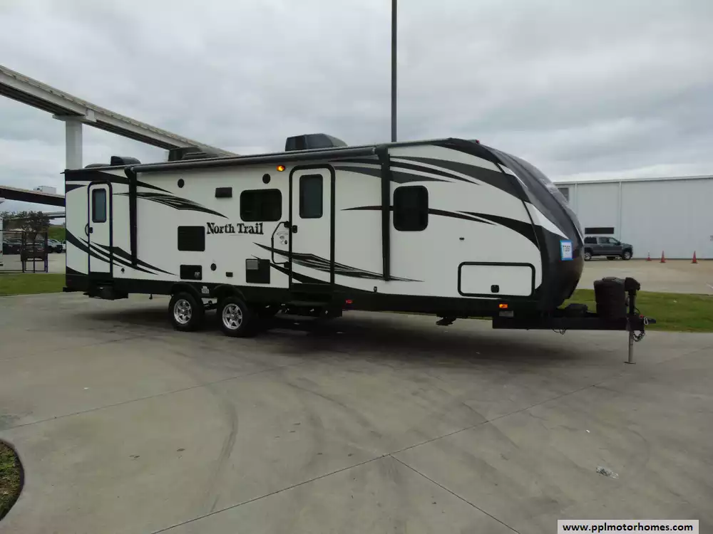 This 2016 North Trail 28DBSS is a versatile and family-friendly travel trailer designed for comfort,functionality,and ease of towing.With a focus on smart design and modern amenities,it's an ideal choice for families or groups seeking memorable camping adventures.Features Include...Electric Tongue Jack, 1 Slide-out, 1 Non-Ducted And 1 Ducted Air Conditioner, Double Door Gas/110v Dometic Refrigerator, Automatic Main Awning, Outside Speakers,New Tires,Winterized, TV, DVD Player, Outside Shower, Microwave,3 Burner Range,and Oven.This is an excellent travel trailer for both weekend getaways and extended road trips, delivering comfort and practicality in a stylish package.