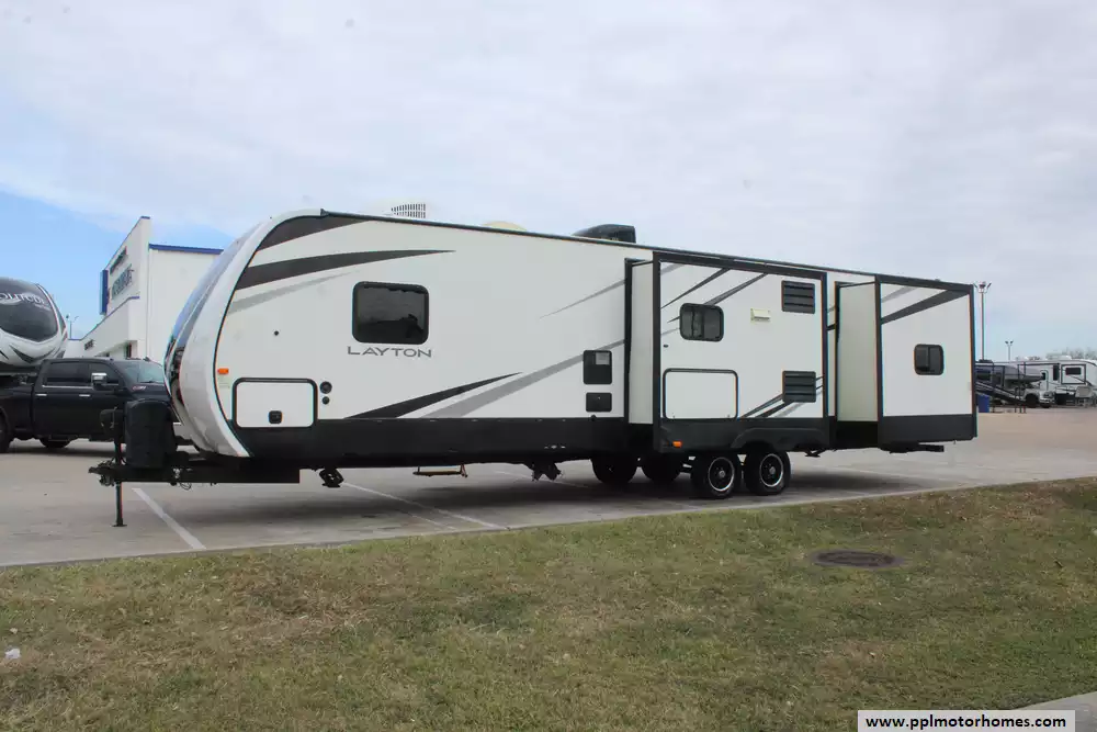 This 2016 Layton Javelin 325BH is built to provide a balance of comfort and practicality for road trips or extended stays. Features Include...Electric Tongue Jack, 3 Slide-outs, 1 Non-Ducted And 1 Ducted Air Conditioner, Double Door Magic Chef Refrigerator, Outside Speakers, TV, DVD Player, Outdoor Kitchen, Outside Shower, Microwave, 3 Burner Range, and Oven.