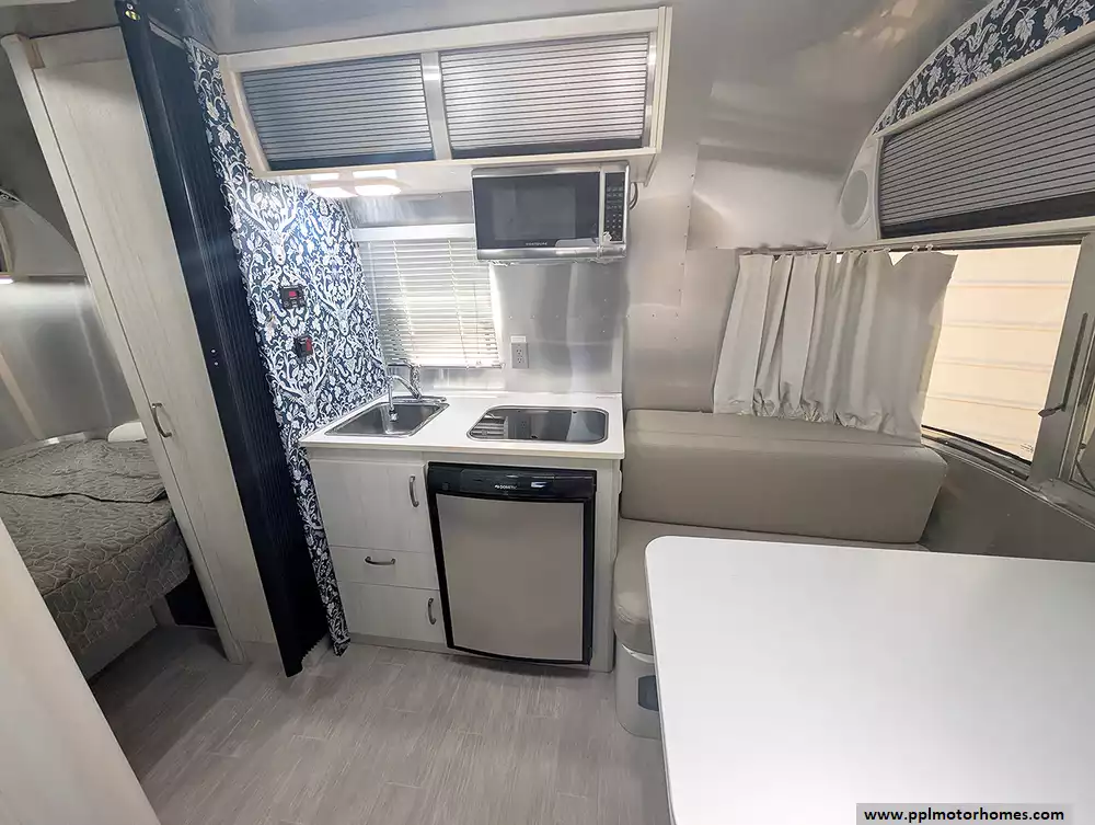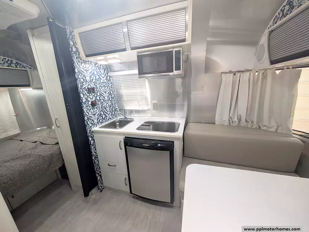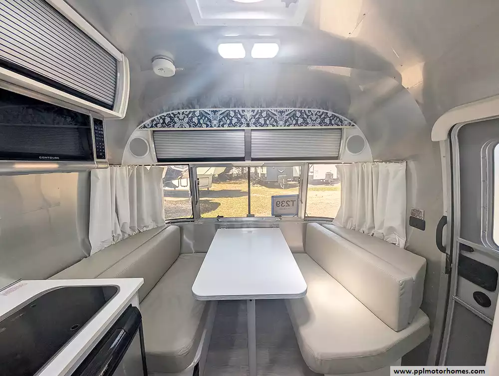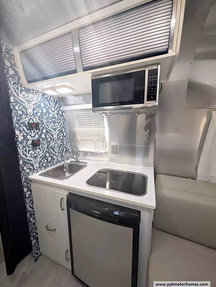 Inside, you will find a fully-equipped sanctuary featuring a two-burner range, a convection microwave, and a single-door gas/12v Dometic refrigerator for all your culinary needs. Stay perfectly comfortable in any climate with the ducted air conditioner, and enjoy your favorite shows on the included TV after a day of exploring. The exterior is just as functional, boasting a main awning for shaded outdoor relaxing and a convenient outside shower to rinse off gear before heading inside. This 2017 Bambi Sport 16 perfectly blends the freedom of minimalist travel with the high-end comforts that have made Airstream an American classic.