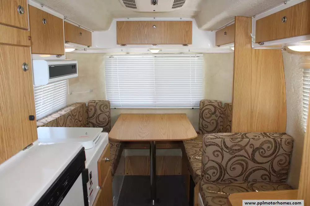 Inside, you will find a thoughtfully arranged living space equipped with all the essential amenities for life on the road. The kitchen features a two-burner range, a microwave, and a Dometic gas/electric refrigerator that includes a convenient in-fridge ice maker. When you are ready to enjoy the outdoors, the main awning provides plenty of shade, while the outside shower is perfect for rinsing off gear after a day of adventure. Whether you are embarking on a weekend getaway or a long-term road trip, this well-maintained Casita Deluxe delivers the comfort and reliability you need to explore with confidence.