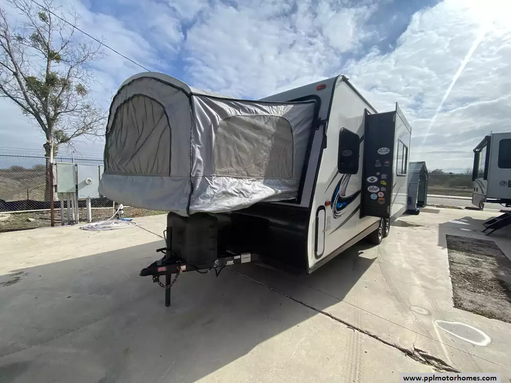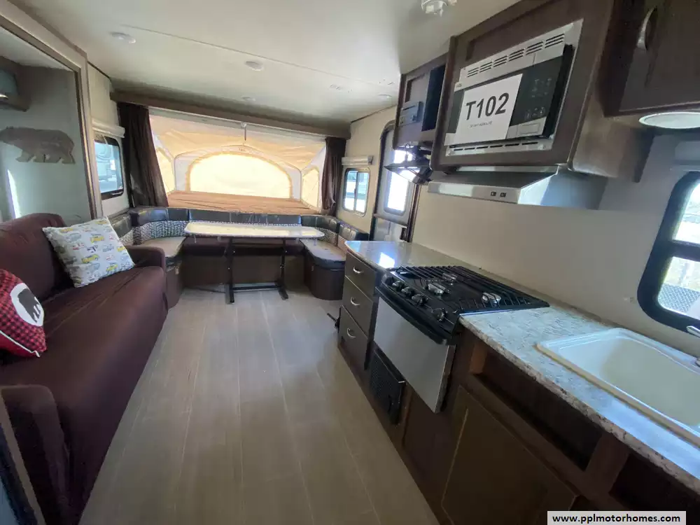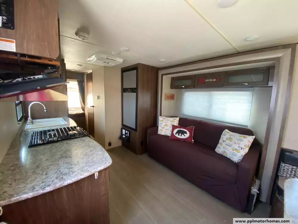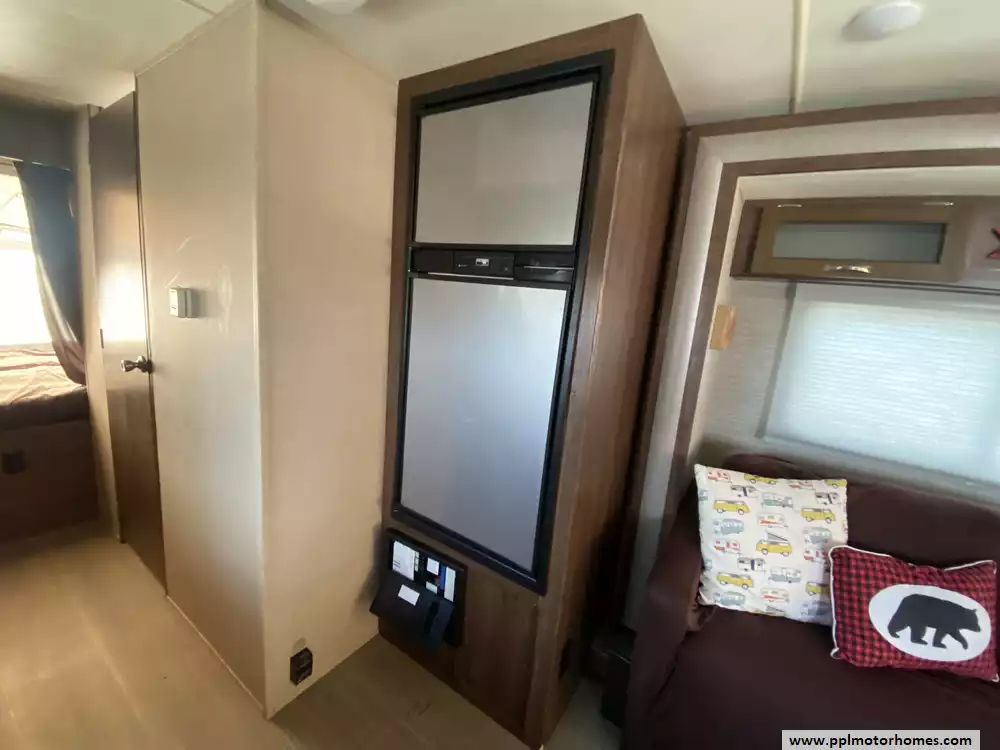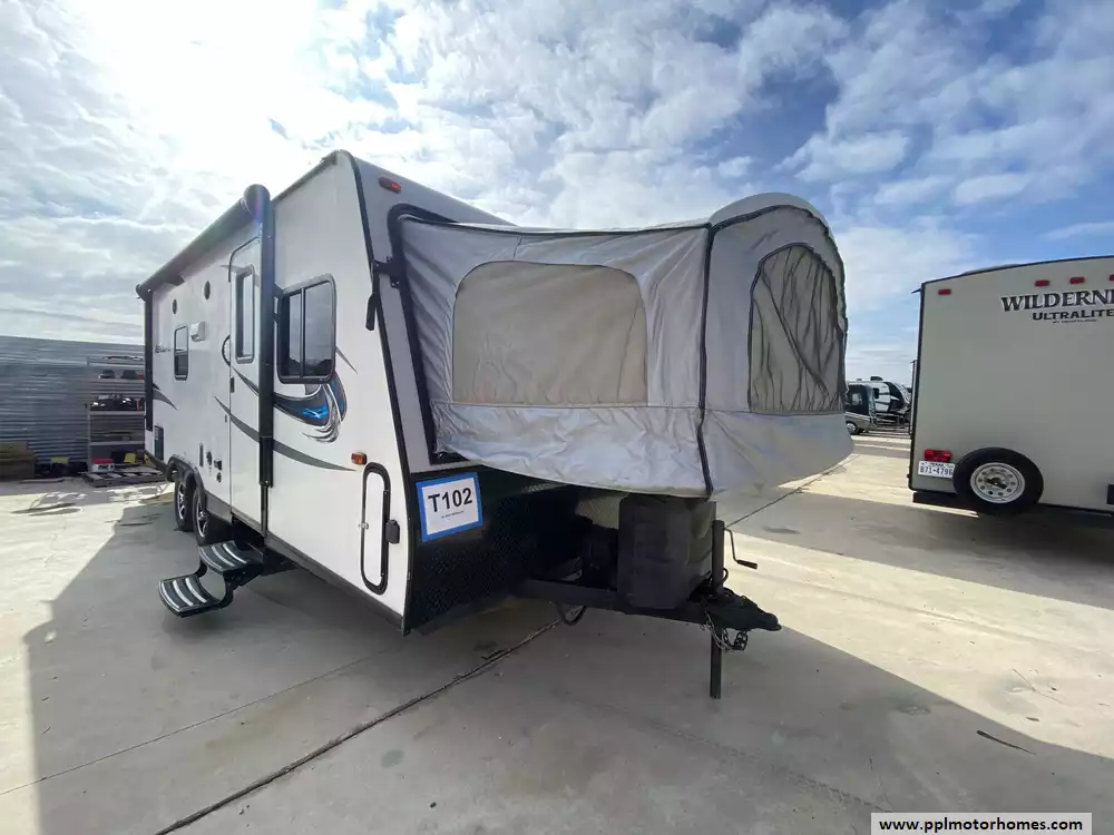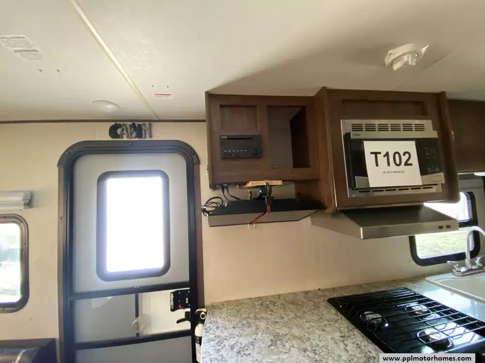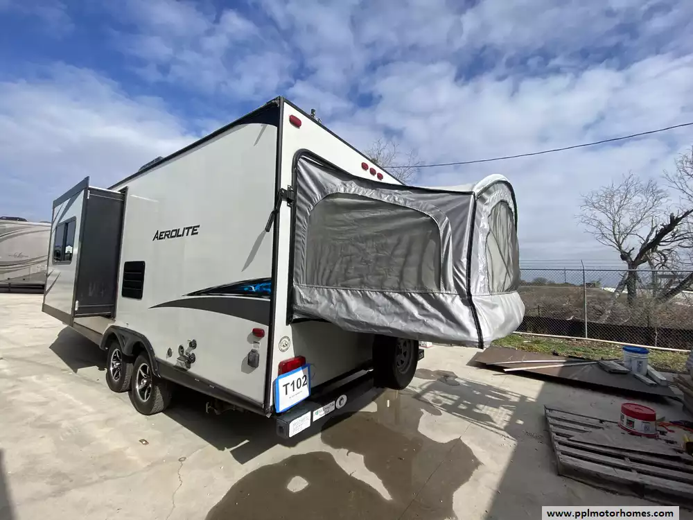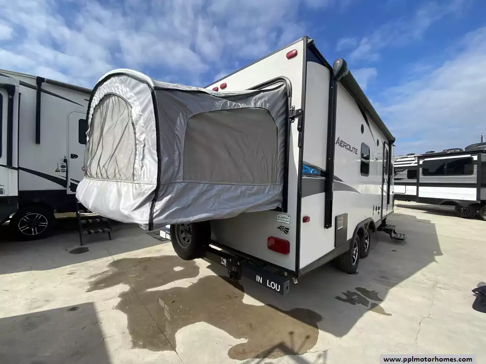 This 2017 Aerolite 204ES has a 1 Slide-out, 1 Non-Ducted Air Conditioner, Double Door Gas/110v Norcold Refrigerator, Automatic Main Awning, Outside Speakers, TV, DVD Player, Microwave, 3 Burner Range, Oven