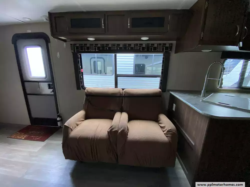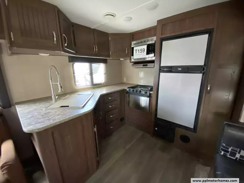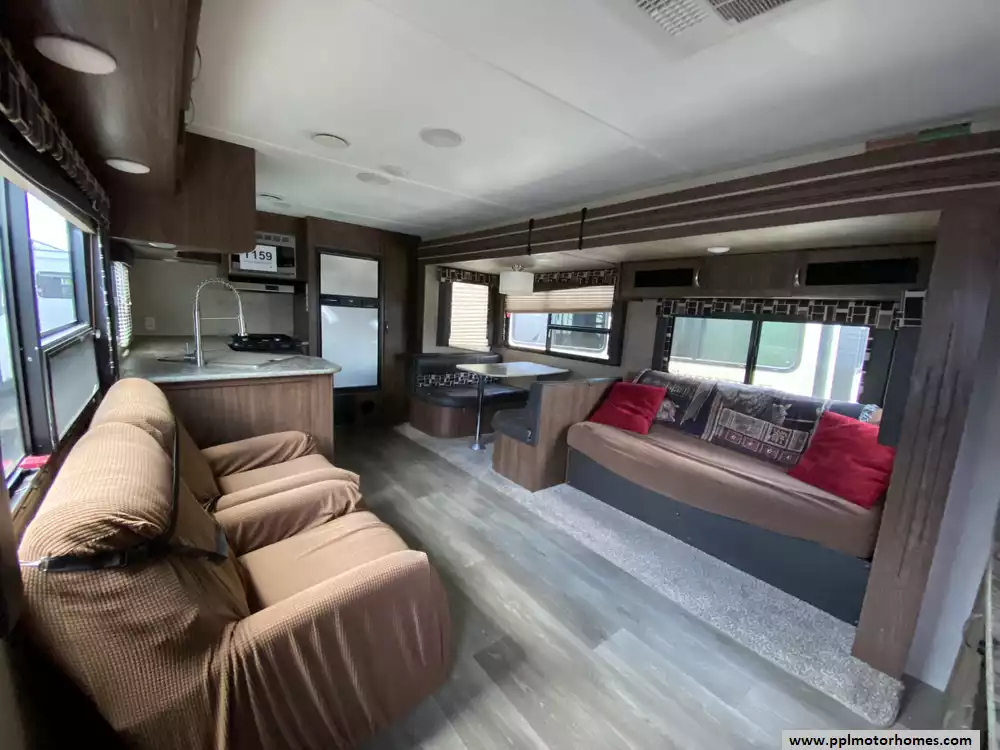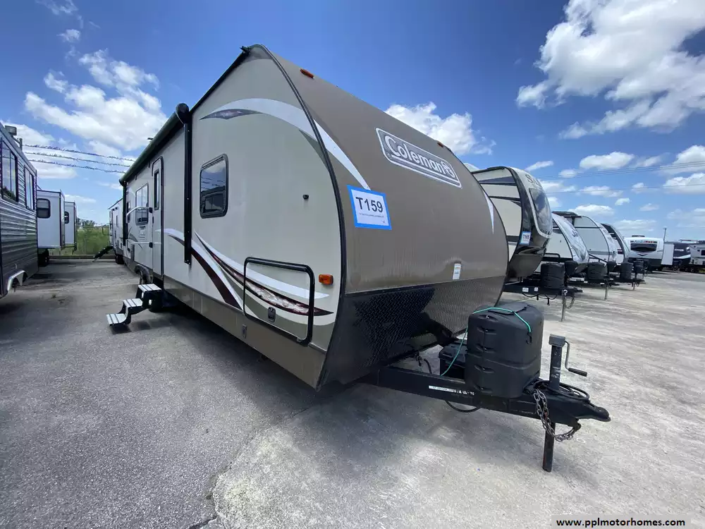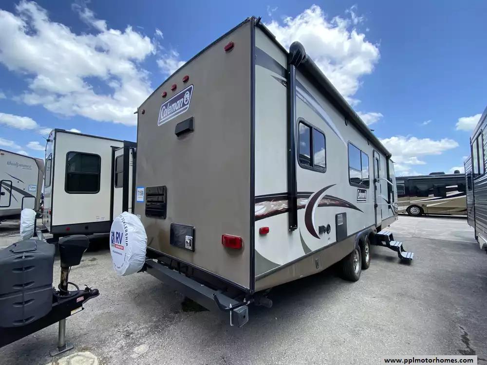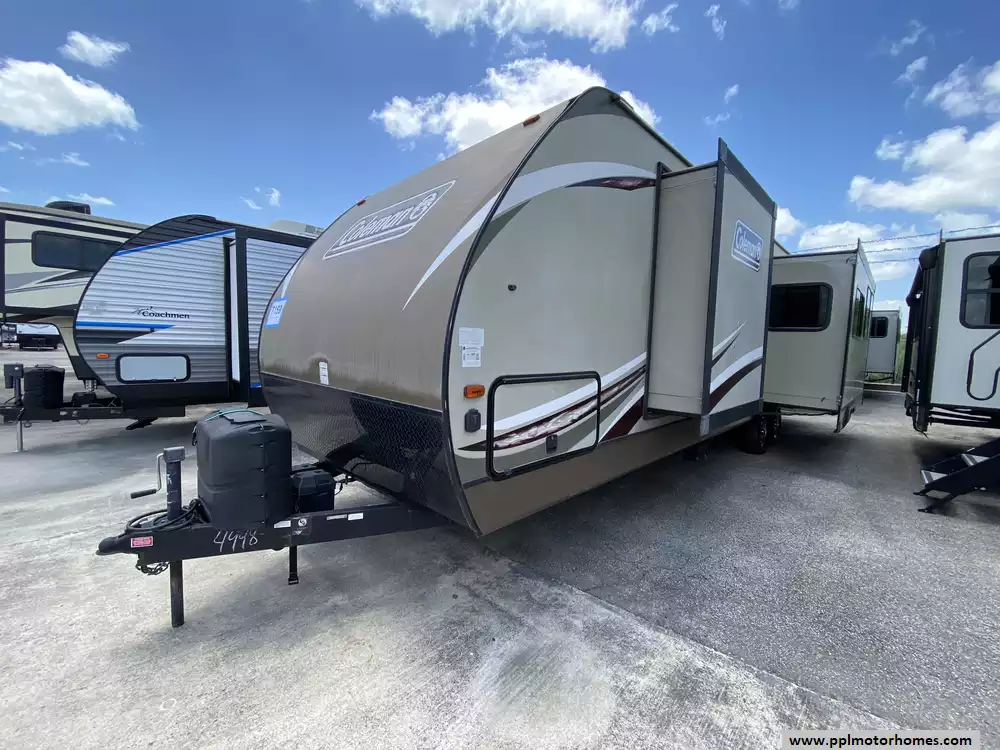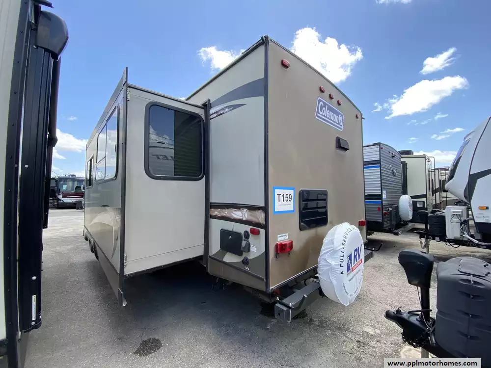 This 2017 Coleman Lantern Lite 2915RK has a 2 Slide-outs, 1 Ducted Air Conditioner, Double Door Gas/110v Norcold Refrigerator, Automatic Main Awning, Outside Speakers, DVD Player, Outside Shower, Microwave, 2 Burner Range, Oven, Front anf Rear Electric Stabilizers
