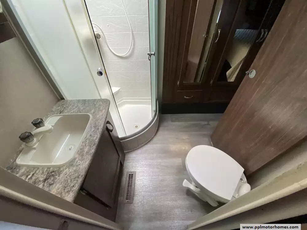 (Floor plan is NOT drawn to scale. Length of vehicle is approximate. Buyer is responsible for verifying actual length. PPL Motor Homes compiled this list of features, specifications, equipment and options as a guide. No representation or warranties, either express or implied, are made as to the accuracy of the information herein. Please verify for yourself all items listed before purchase.)