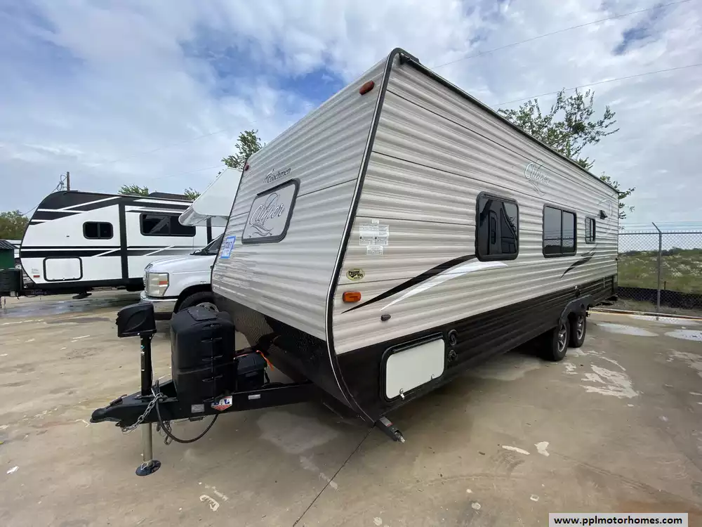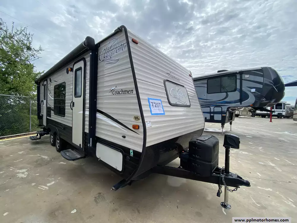 This 2017 Coachman Clipper 21FQ has an Electric Tongue Jack, 1 Non-Ducted Air Conditioner, Double Door Gas/110v Dometic Refrigerator, Automatic Main Awning, Outside Speakers, TV, DVD Player, Outside Shower, Microwave, 3 Burner Range