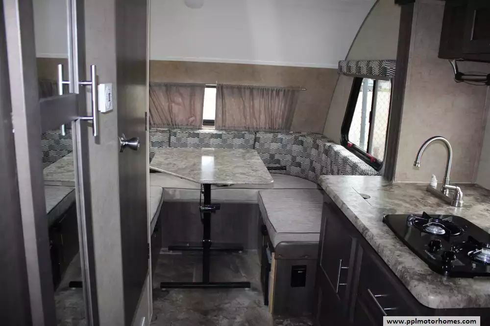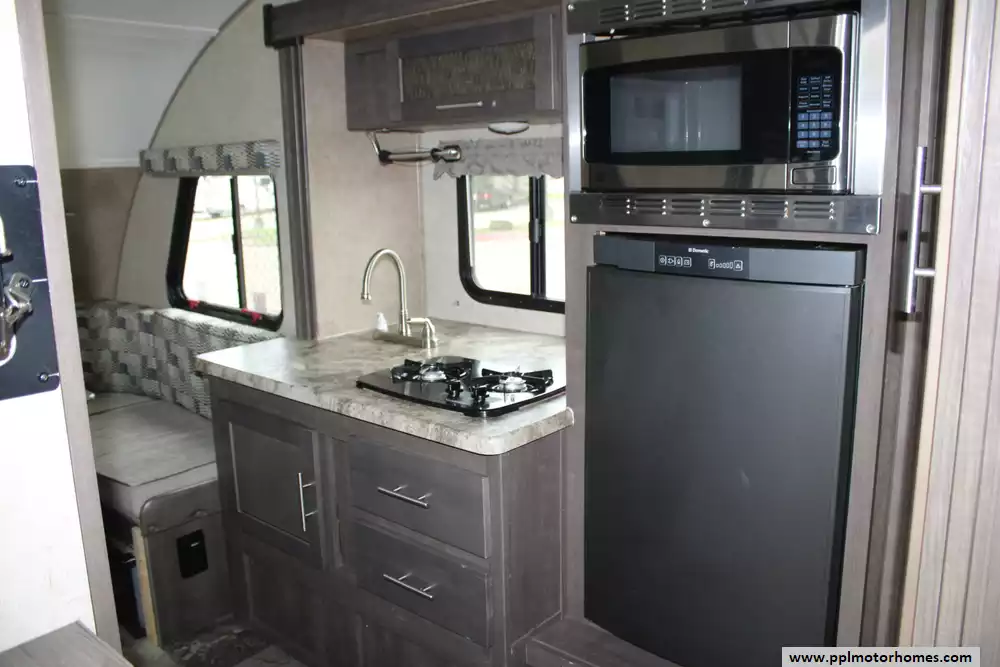 The 2017 Forest River R-Pod 176 is a compact and lightweight travel trailer designed for easy towing and comfortable camping for couples or small families. Measuring about 20 feet in length and weighing roughly 2,600 pounds dry, this trailer can be towed by many SUVs and midsize trucks while still offering practical interior space. The layout typically sleeps up to four people and features a front queen bed, a U-shaped dinette that converts into additional sleeping space, and a full rear bathroom with a toilet, sink, and shower. The kitchen includes a refrigerator, two-burner cooktop, microwave, and sink, providing convenient meal preparation on the road. Additional amenities such as air conditioning, a furnace, 36-gallon fresh water capacity, LED lighting, and exterior storage make the R-Pod 176 a versatile and efficient travel trailer ideal for weekend getaways or extended camping trips.