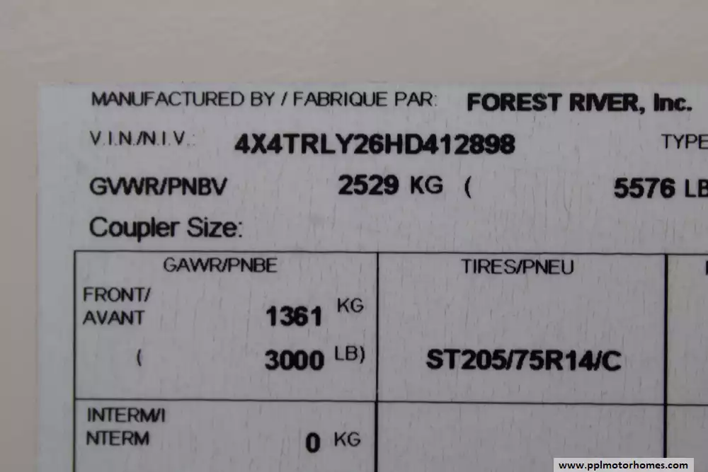 Specs: Length: 23.58 ft., Width: 8 ft., Height: 10.25 ft., Interior Height: 6.67 ft., Payload Capacity: 1,423 lbs., Total Fresh Water Tank Capacity: 43 gal., Total Gray Water Tank Capacity: 30 gal., Total Black Water Tank Capacity: 30 gal., Total Number of Propane Tanks: 2, Total Propane Tank Capacity: 60 lbs.