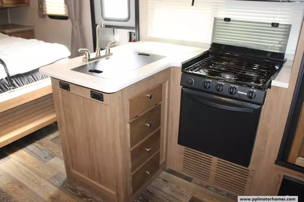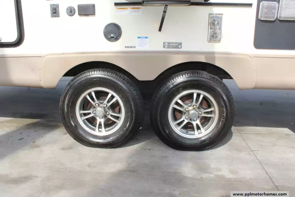 Specs: Length: 25.11 ft., Height: 10.11 ft., Width: 8 ft., Total Fresh Water Tank Capacity: 54 gal., Total Gray Water Tank Capacity: 29 gal., Total Black Water Tank Capacity: 29 gal., Total Number of Propane Tanks: 2, Total Propane Tank Capacity: 60 lbs.