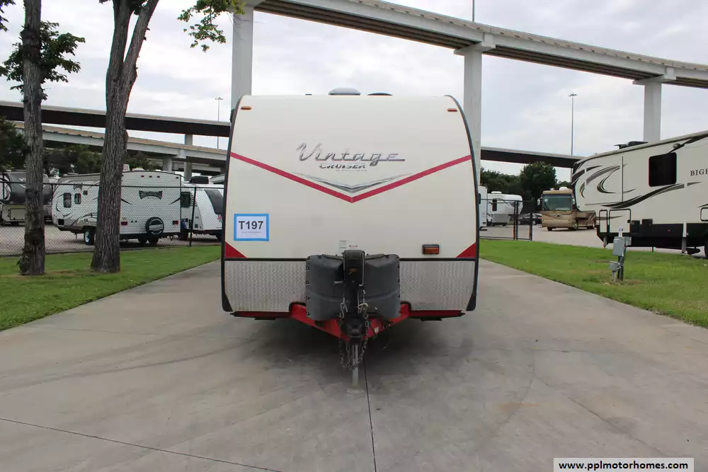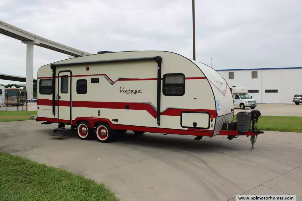 This 2017 Vintage Cruiser 23RSS is a retro-inspired, lightweight travel trailer designed to blend nostalgic 1950s style with modern convenience. Features Include...Electric Tongue Jack, 1 Slide-out, Double Door Gas/110v Dometic Refrigerator, Automatic Main Awning, Satellite Dish, Outside Speakers, 2 TVs, DVD Player, Microwave, 3 Burner Range, and Oven.