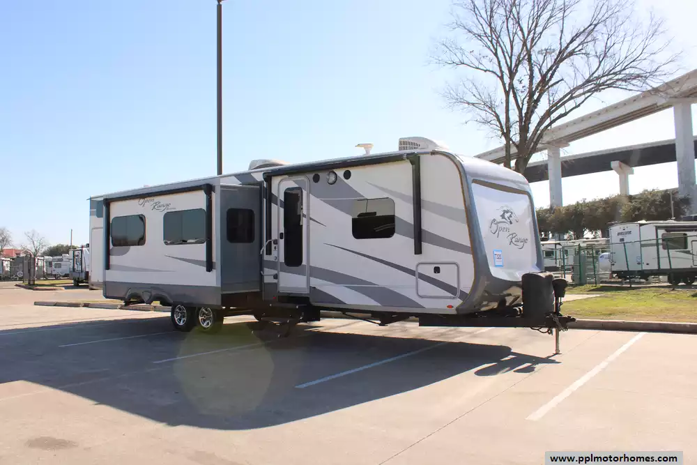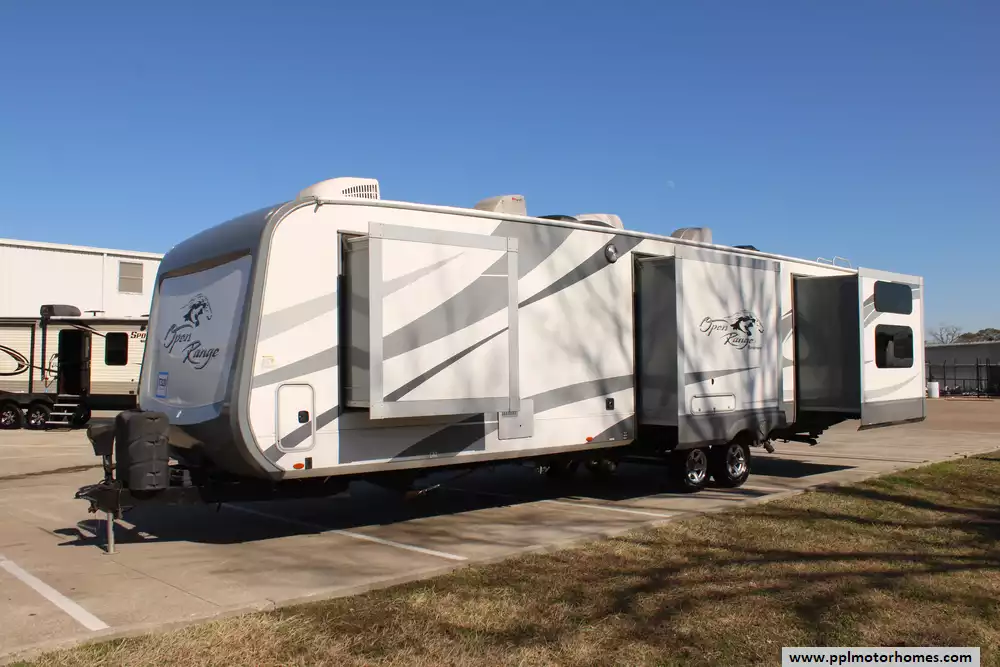 This 2017 Open Range Roamer 328BHS is a spacious and luxurious fifth wheel that offers a comfortable and enjoyable camping experience. With its well-designed interior and impressive features, this RV is designed to provide both functionality and style for travelers seeking a home away from home..Features Include...Has an Electric Tongue Jack, 4 Slide-outs, 2 Ducted Air Conditioners, Side by Side 110v Residential Frigidaire Refrigerator, In-Fridge Ice Maker, Automatic Main Awning, Outside Entertainment System, 4 TVs,Four Seasons Package, Outdoor Kitchen, Outside Shower, Microwave, 3 Burner Range,and Oven.This is a well-designed and feature-rich fifth wheel that offers a luxurious and comfortable living space for travelers. With its spacious interior, bunkhouse layout, and high-end amenities, this RV is a top choice for those looking to experience the joys of camping without sacrificing the comforts of home.