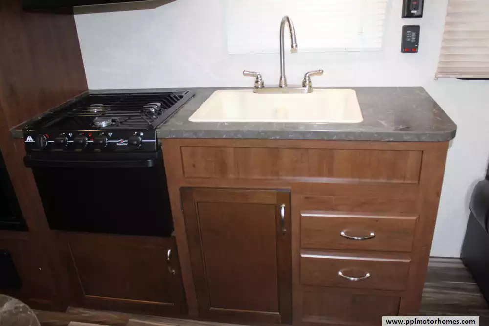 Specs: Length: 29.6 ft., Width: 8 ft., Height: 10.6 ft., Payload Capacity: 2,365 lbs., Total Fresh Water Tank Capacity: 84 gal., Total Gray Water Tank Capacity: 39 gal., Total Black Water Tank Capacity: 39 gal., Total Propane Tank Capacity: 40 lbs.