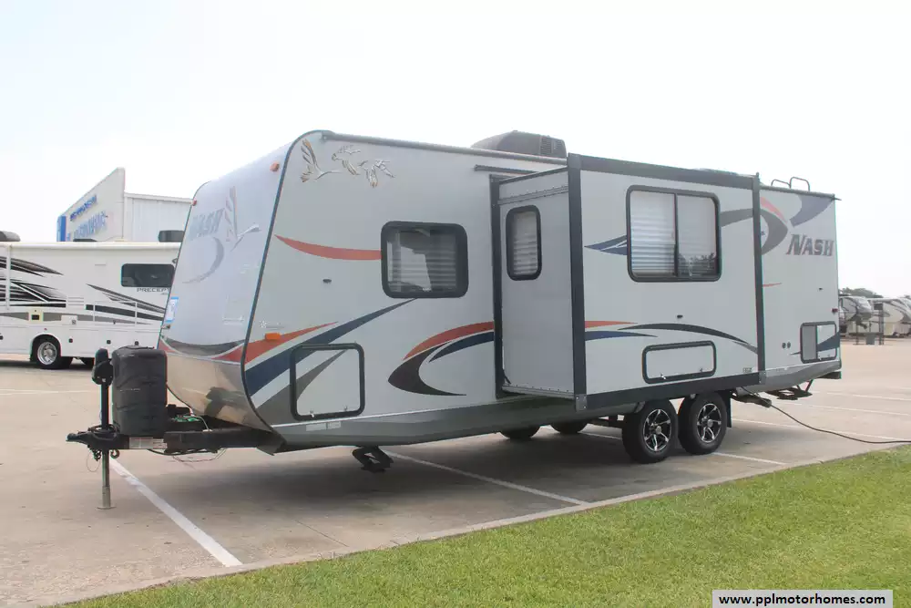 Expand Your Comfort Zone In This 2017 Nash 25C.Features Include...Has an Electric Tongue Jack, 1 Slide-out, 1 Ducted Air Conditioner, Double Door Gas/110v Norcold Refrigerator, Automatic Main Awning, TV, Outside Shower, Microwave, 3 Burner Range,and Oven.Elegance With a Spoonful of Attitude!Stay Focused on the Fun!