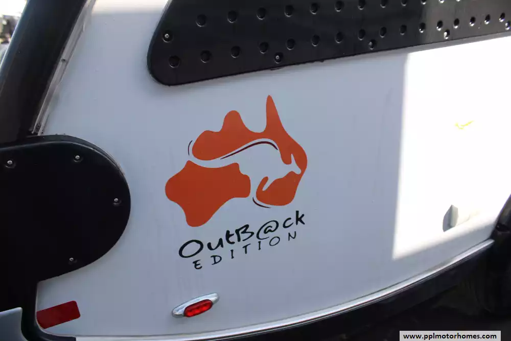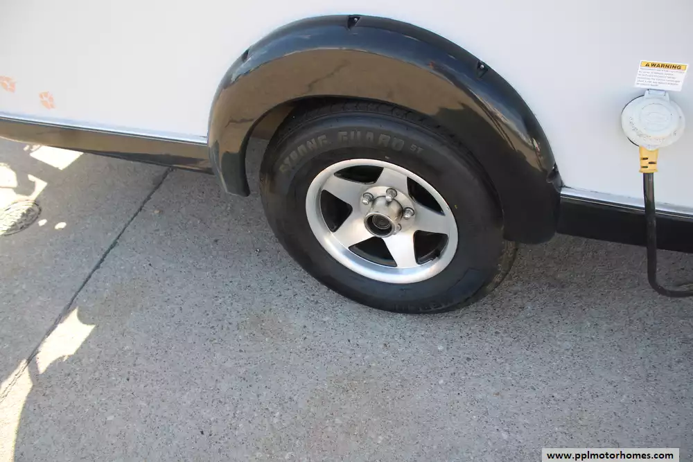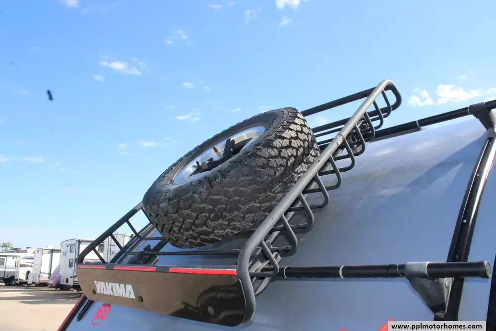 The 2017 nuCamp TAB 320S Outback Edition (now known as "Boondock Edition") is a rugged, adventure-ready teardrop travel trailer built for two, blending compact comfort with off-grid capability. Weighing about 1,788 lbs dry with a hitch weight of roughly 140 lbs and measuring 15'2" in length, it features a U-shaped dinette that converts to a king-size bed, a wet bath, full kitchen, air conditioning, heating, and central utilities. The "Outback" enhancements include off-road matte-black wheels, a heavy-duty pitched axle, aggressive tires, diamond-plated tongue box and tub/fenders, an aluminum utility platform, Yakima roof rack plus spare and cargo basket, solid gray cushions, Marmoleum flooring, and custom decals to give both durability and style for boondocking adventures.