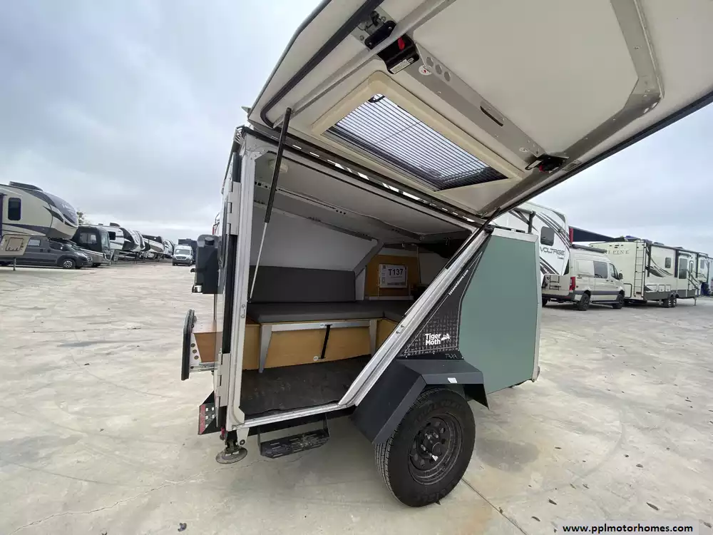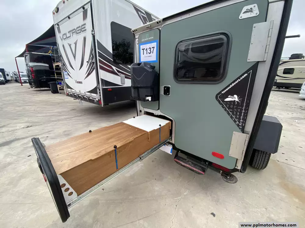 The 2017 TAXA TigerMoth , NASA-inspired design, featuring a rugged off-road build with a steel chassis, aluminum skeleton, offering a compact, garage-storable "mobile habitat" with a full-size bed, slide-out Drawer, and potential for roof-top tent additions, perfect for adventurous campers seeking lightweight, functional, and eco-friendly exploration, Window A/C,