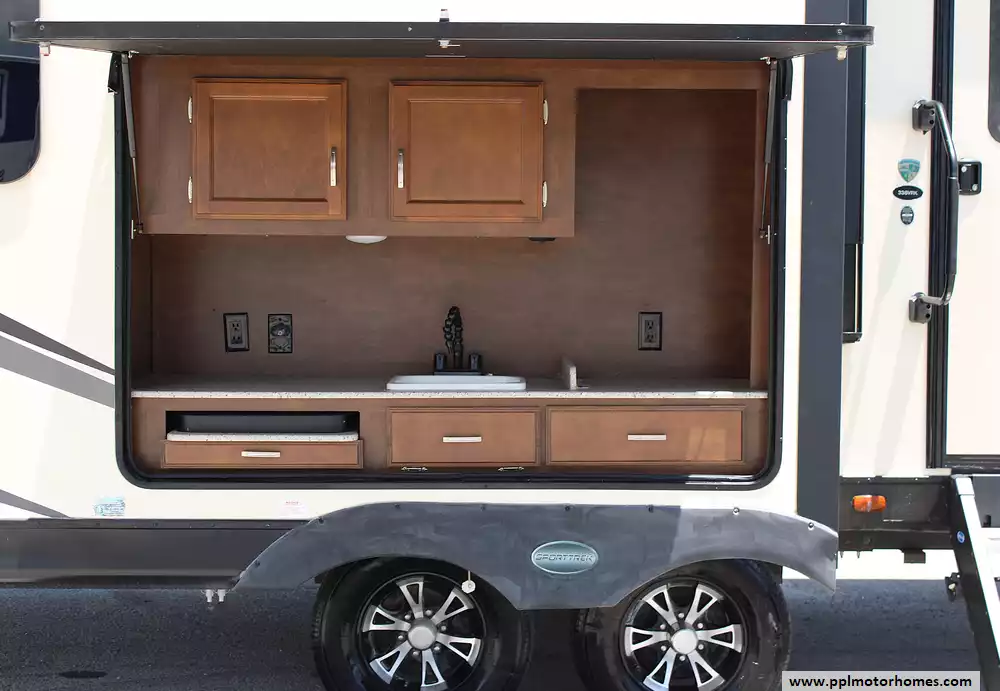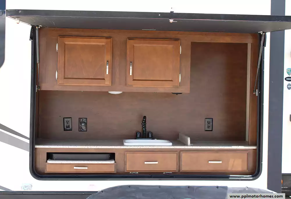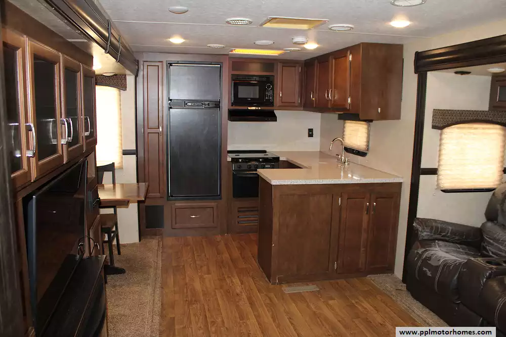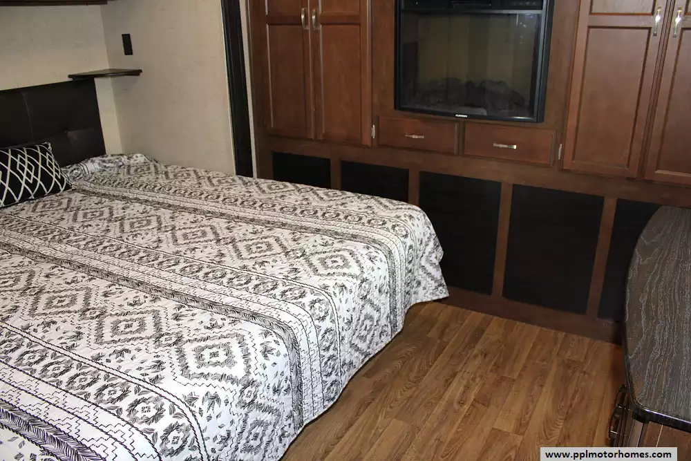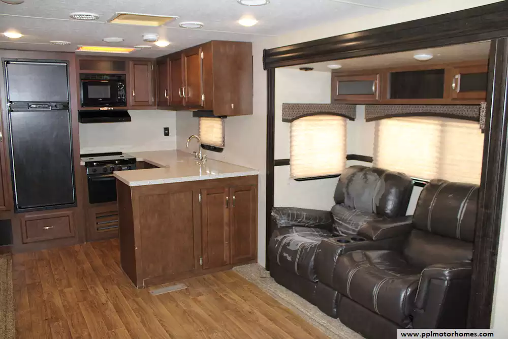 This trailer is towable with a 3/4-ton or larger vehicle and is built for comfort and convenience. The electric stabilizer jacks are currently operated manually, providing peace of mind when leveling. The exterior offers tons of storage, frameless windows, a power awning, and outdoor kitchen hookups for added versatility. While the second rear awning is missing and the original 2016 tires may need replacing soon. This coach is perfect for buyers looking to personalize their unit and still save thousands compared to new.