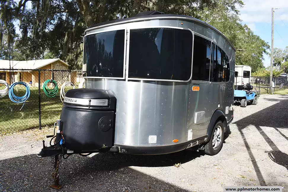 This 2018 Basecamp 16 has a 1 Ducted Air Conditioner, Single Door 110v/12v Refrigerator, Solar Panel, Outside Shower, Microwave, 2 Burner Range