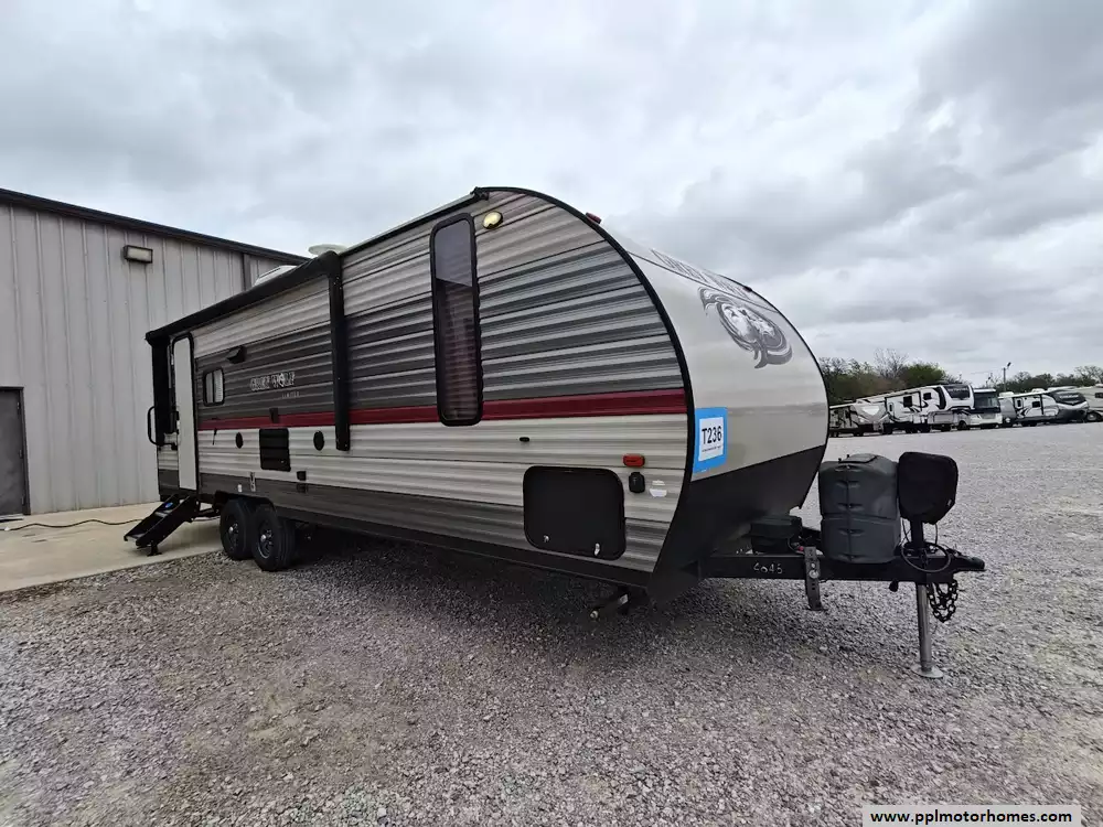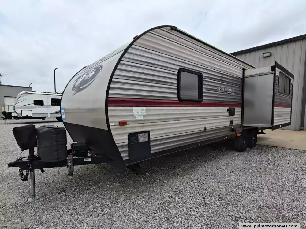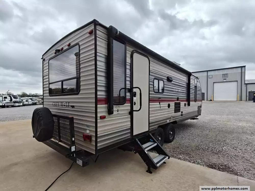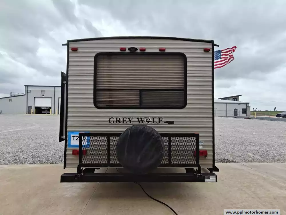 Experience the perfect balance of adventure and convenience with this 2018 Cherokee Grey Wolf 23MK. This 28-foot travel trailer is built with a durable aluminum body and a walkable roof, maintaining the Forest River reputation for quality and easy towability. Setting up camp is a breeze thanks to the electric tongue jack and automatic main awning, while the outside shower and exterior speakers ensure you can enjoy the great outdoors to the fullest. Known for its aerodynamic profile and smart use of space, this model is an excellent choice for those looking for a reliable and stylish getaway vehicle that is easy to manage on the road.