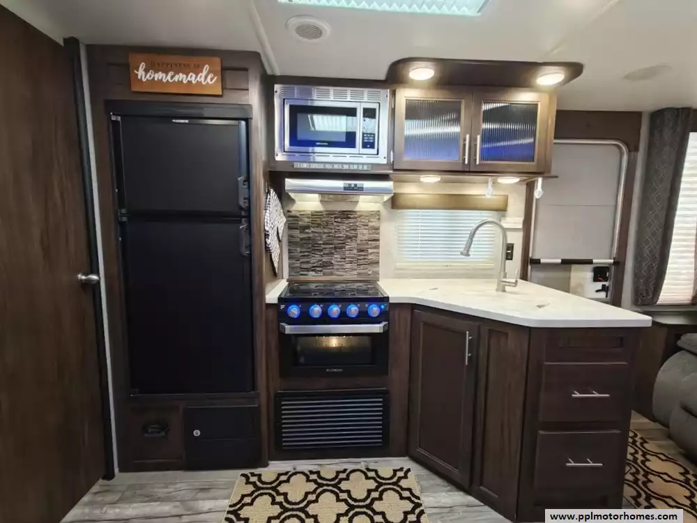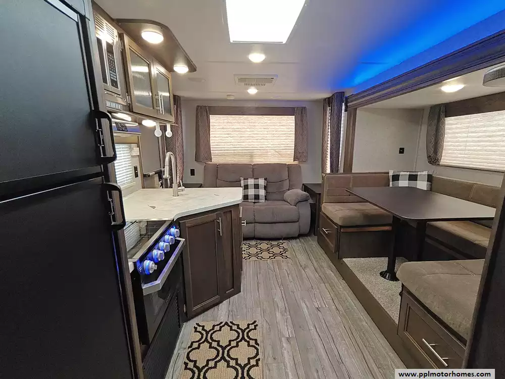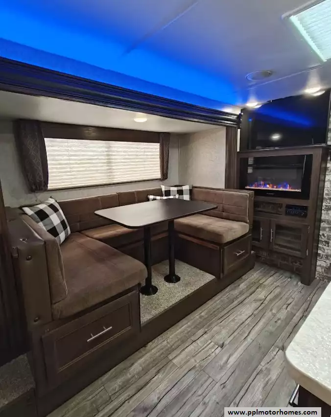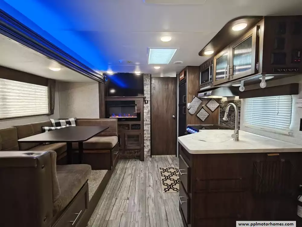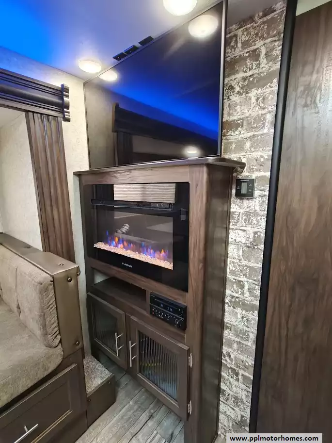 Inside, the spacious living area is enhanced by a single slide-out, creating an open environment perfect for relaxing by the cozy electric fireplace. The interior stays comfortable in any weather with ducted air conditioning and features two TVs for your entertainment needs. The kitchen is fully equipped for any meal, featuring a double-door 12v Dometic refrigerator, microwave, three-burner range, and oven. With its blend of residential-style comforts and rugged durability, this Cherokee Grey Wolf 23MK is ready to provide years of unforgettable memories on the open road.