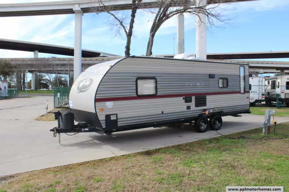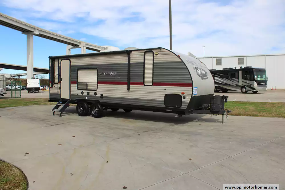 This 2018 Cherokee Grey Wolf 25RL is a travel trailer that exemplifies a harmonious blend of comfort, functionality, and affordability.Grey Wolf series is celebrated for its versatile floorplans and family-friendly features, making it a popular choice for those seeking a memorable RV experience.Features Include...Has an Electric Tongue Jack, 1 Ducted Air Conditioner, Double Door Norcold Refrigerator, Automatic Main Awning, Outside Speakers, TV, Outside Shower,Step Above Steps, Microwave, 3 Burner Range,and Oven.It is designed to accommodate couples or small families with its thoughtful layout and sleeping arrangements. Additional sleeping space may be available on the convertible furniture, allowing for flexibility when hosting guests.