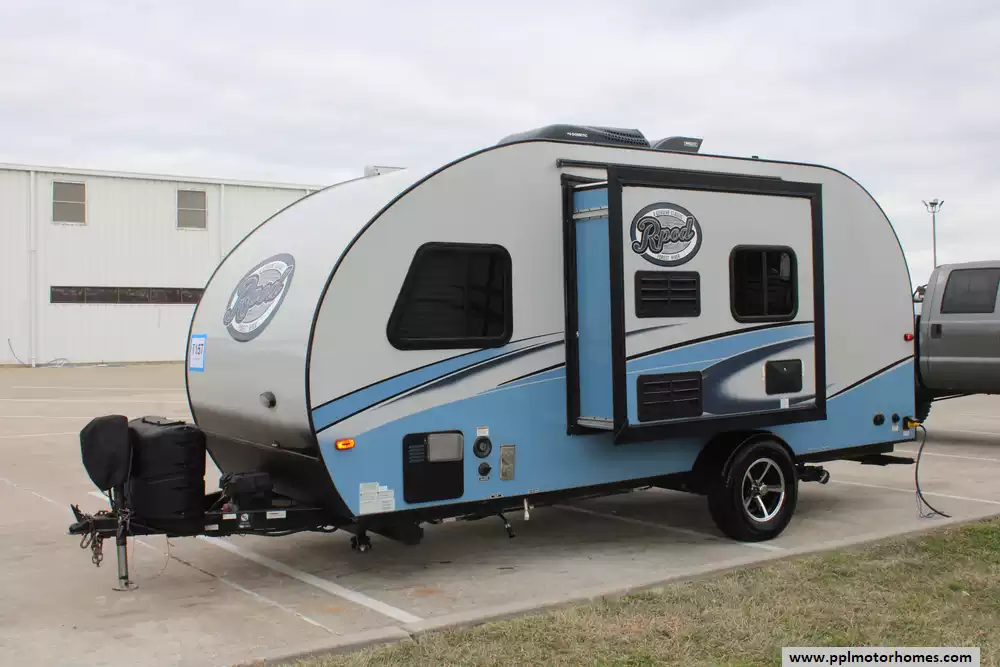 This 2018 R-Pod 180 is a compact and stylish travel trailer that combines a retro design with modern amenities, offering a unique and enjoyable camping experience. Measuring at just 20 feet in length, this model is known for its lightweight and aerodynamic construction, making it easy to tow and maneuver while still providing a comfortable living space..Features Include...Has an Electric Tongue Jack, 1 Slide-out, 1 Non-Ducted Air Conditioner, Single Door Gas/110v Dometic Refrigerator, Automatic Main Awning, Outside Speakers, TV, Outside Shower, Microwave,and 2 Burner Range.This is a compact and stylish travel trailer that offers a comfortable living space for those who appreciate a retro aesthetic. With its thoughtful interior design, modern amenities, and lightweight construction, this model is an excellent choice for individuals or couples looking for a unique and hassle-free camping experience.