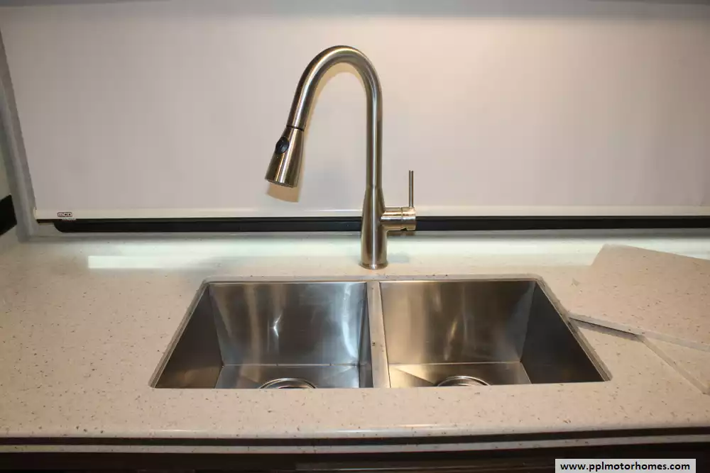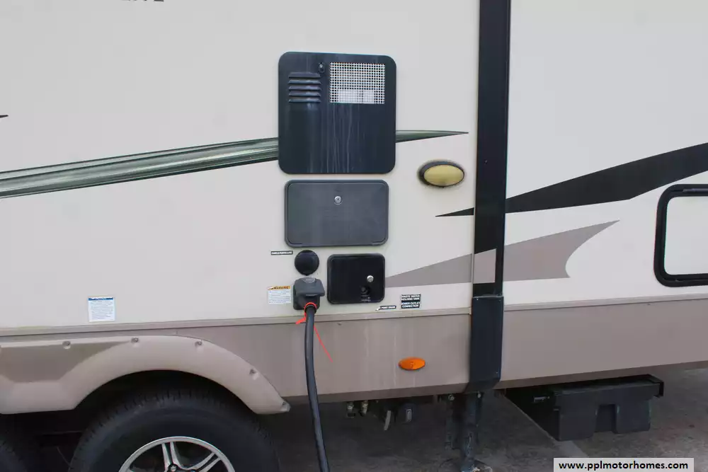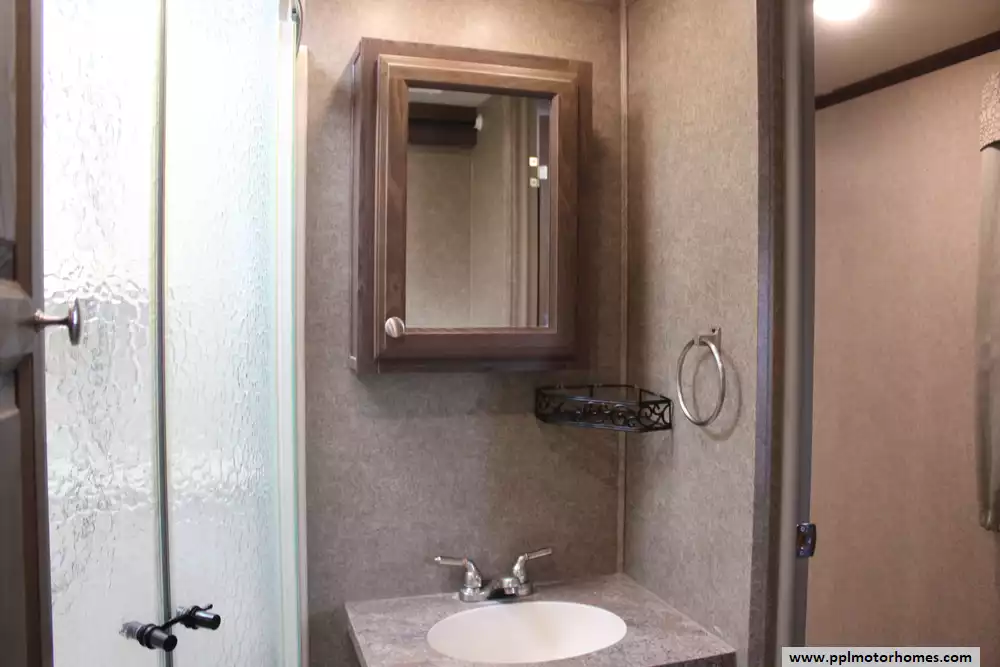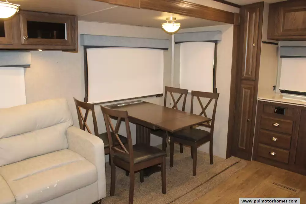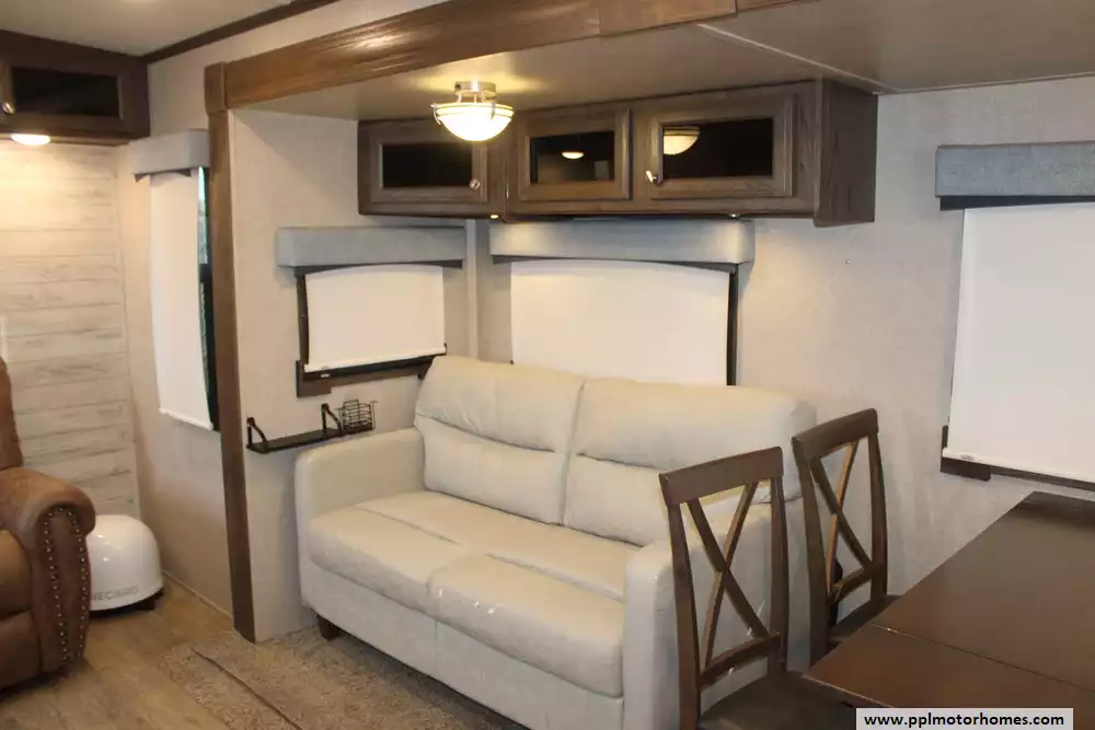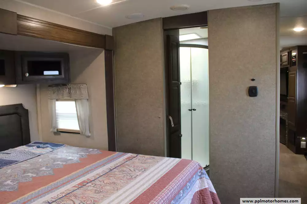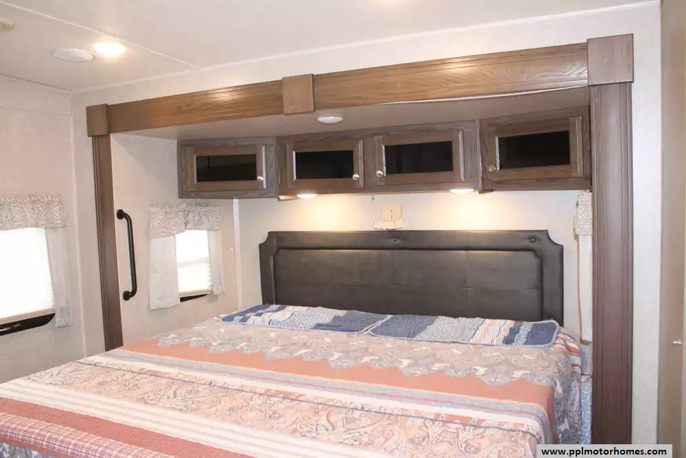 Specs: Length: 35.11 ft., Width: 8 ft., Height: 11.33 ft., Payload Capacity: 1,900 lbs., Total Fresh Water Tank Capacity: 45 gal., Total Grey Tank Capacity: 90 gal., Total Black Water Tank Capacity: 45 gal., Total Propane Tank Capacity: 60 lbs.