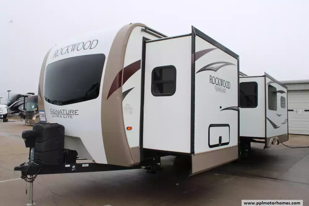 Treat Yourself To This 2018 Rockwood Signature Ultra Lite 8328BS! Some Features Include... An Electric Tongue Jack, A 4-Point Electric Leveling System, 3 Slide-Outs, Backup Camera Prep, Tinted Frameless Windows, Side-Mounted Solar Prep, 2 Ducted Air Conditioners, Maxxair Vent Cover, Double Door Gas/110v Dometic Refrigerator, "iRV Technologies" Smart App Control, Automatic Main Awning, Heated Tanks, Outside Speakers, 2 TVs, DVD Player, Surround Sound, Outdoor Grill, Outdoor Kitchen (Refrigerator/Storage/Sink/2 Burner Range), Outside Shower, Fireplace, Kitchen Island With Flip-Up Countertop Extension, Walk-In Pantry, Spice Rack, Microwave, 3 Burner Range, Range Hood, Oven, Bedroom Charging Center, And More! Explore The World Around You! Ask About PPL's Convenient Financing Options! This Rockwood Is Eligible For An Environmental Protection And Other Benefits!