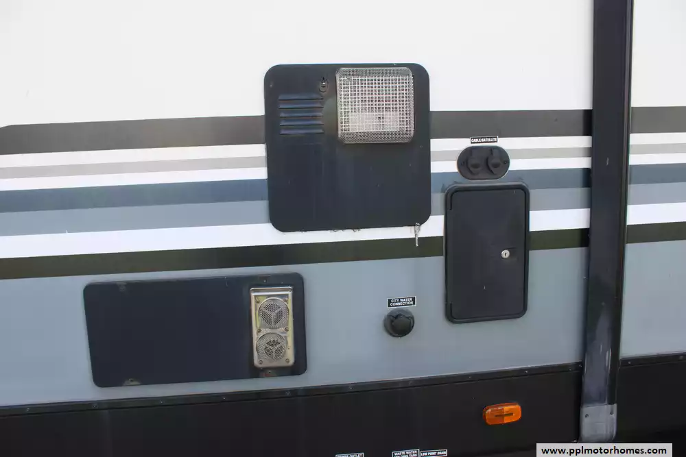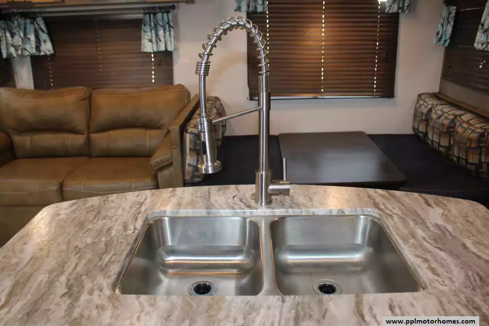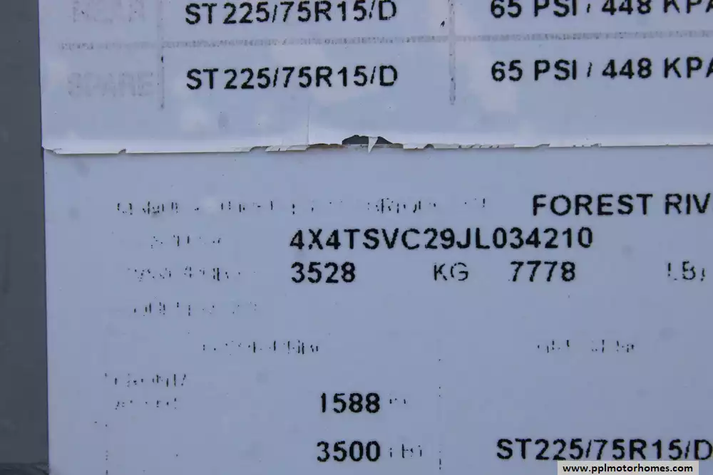 Specs: Length: 31.3 ft., Width: 8 ft., Height: 11.2 ft., Interior Height: 6.11 ft., Payload Capacity: 1,689 lbs., Total Fresh Water Tank Capacity: 46 gal., Total Grey Tank Capacity: 40 gal., Total Black Water Tank Capacity: 30 gal.