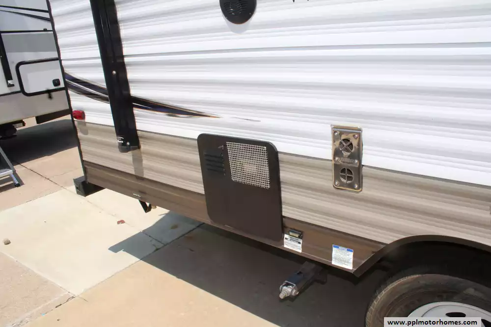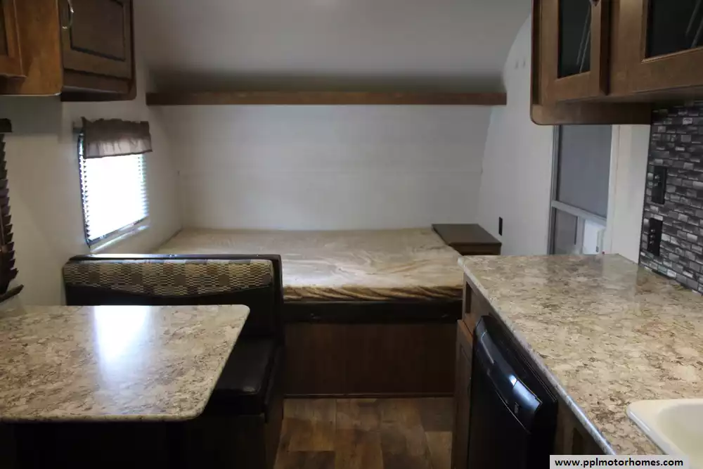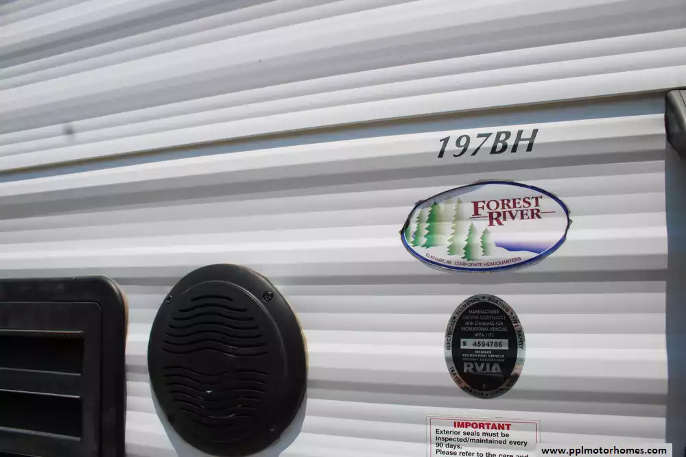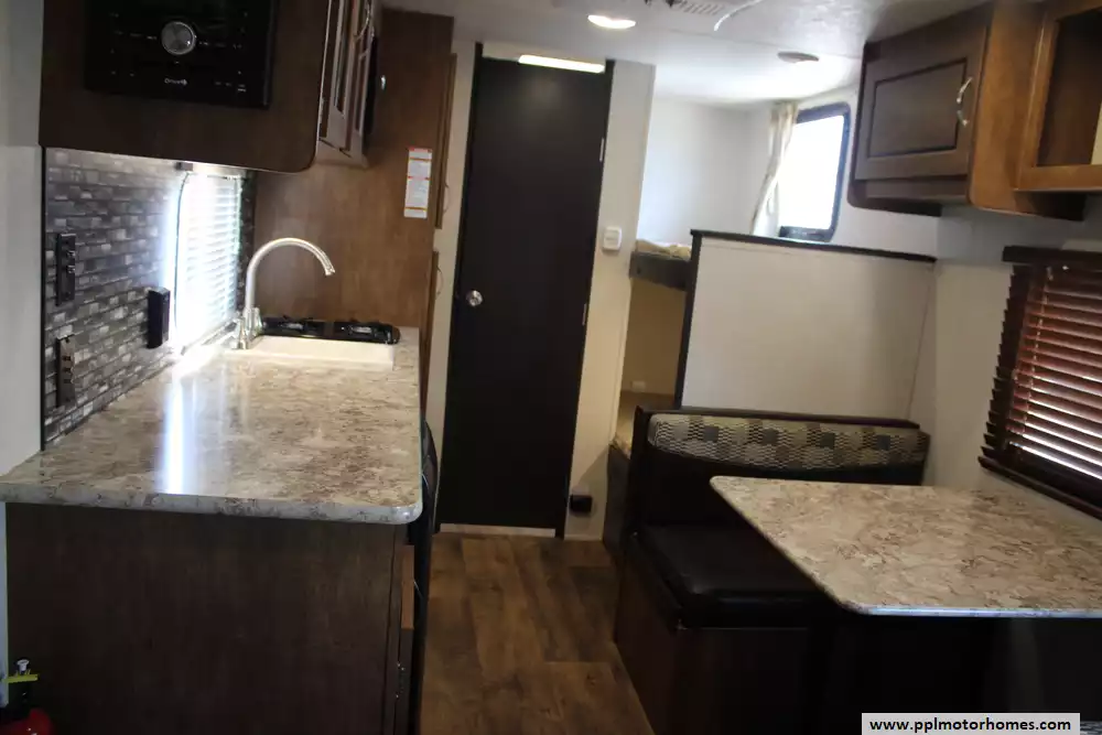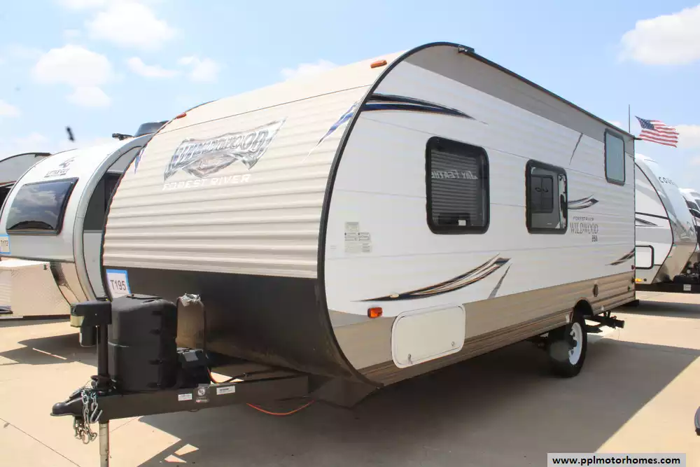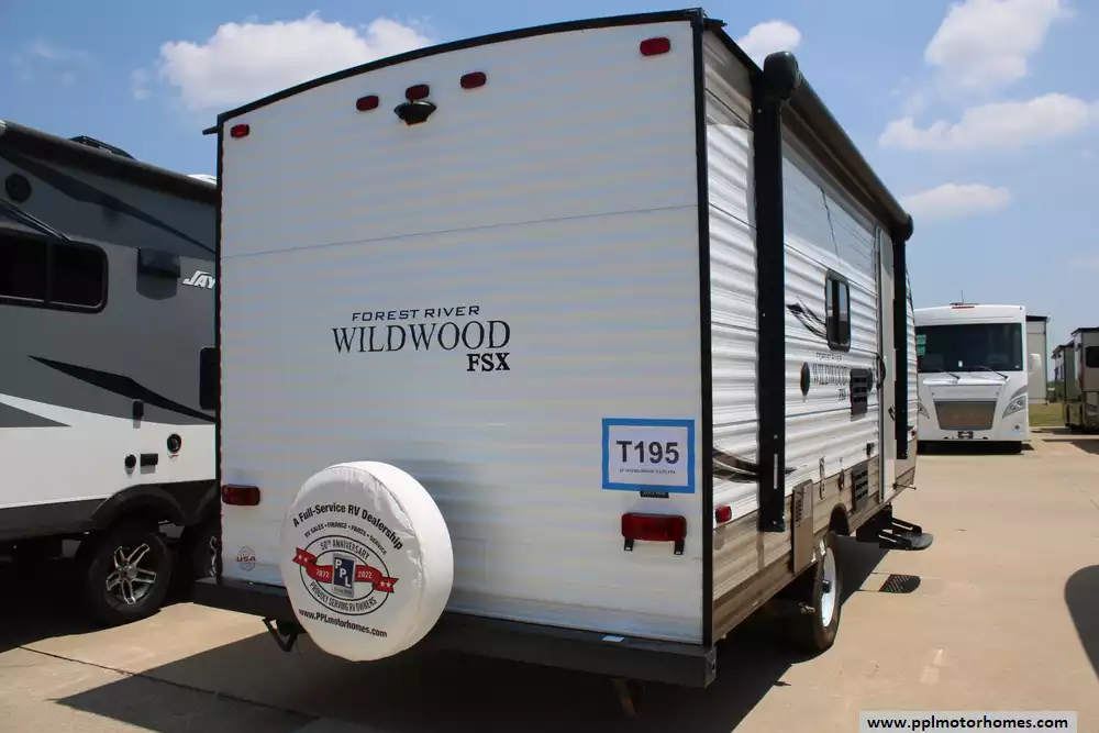 The 2018 Forest River Wildwood X-Lite FSX 197BH travel trailer, a compact yet cleverly arranged bunkhouse trailer is ideal for small families or weekend getaways. This lightweight 22-foot trailer features a dry weight around 2,769 lb, making it easy to tow while providing solid payload capacity. The interior is efficiently laid out with a rear corner bathroom and twin bunks ideal for kids, plus a side-facing queen bed up front and a convertible dinette for extra sleeping space. Its kitchen is equipped with a two-burner cooktop, compact electric/propane refrigerator, microwave, and seamless countertops, complemented by a 12-ft power awning, 13,500 BTU air conditioner, and a 6-gallon DSI propane water heater for comfortable living. With standard safety features like smoke, CO, and LP detectors, exterior storage, and prewiring for TV, cable, and more, this trailer balances convenience and safety in a nimble, family-friendly package.
