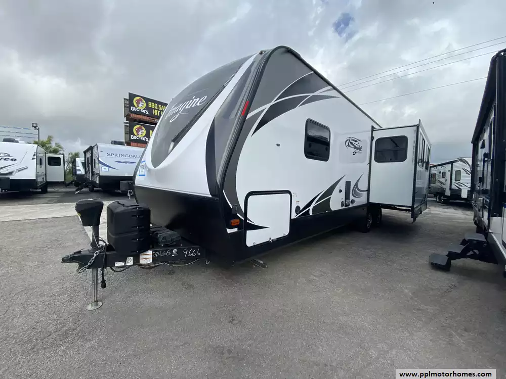 This 2018 Imagine 2670MK has an Electric Tongue Jack, 2 Slide-outs, 1 Non-Ducted And 1 Ducted Air Conditioner, Double Door Gas/110v Dometic Refrigerator, Automatic Main Awning, Outside Speakers, TV, Outdoor Kitchen, Outside Shower, Fireplace, Microwave, 3 Burner Range, Oven