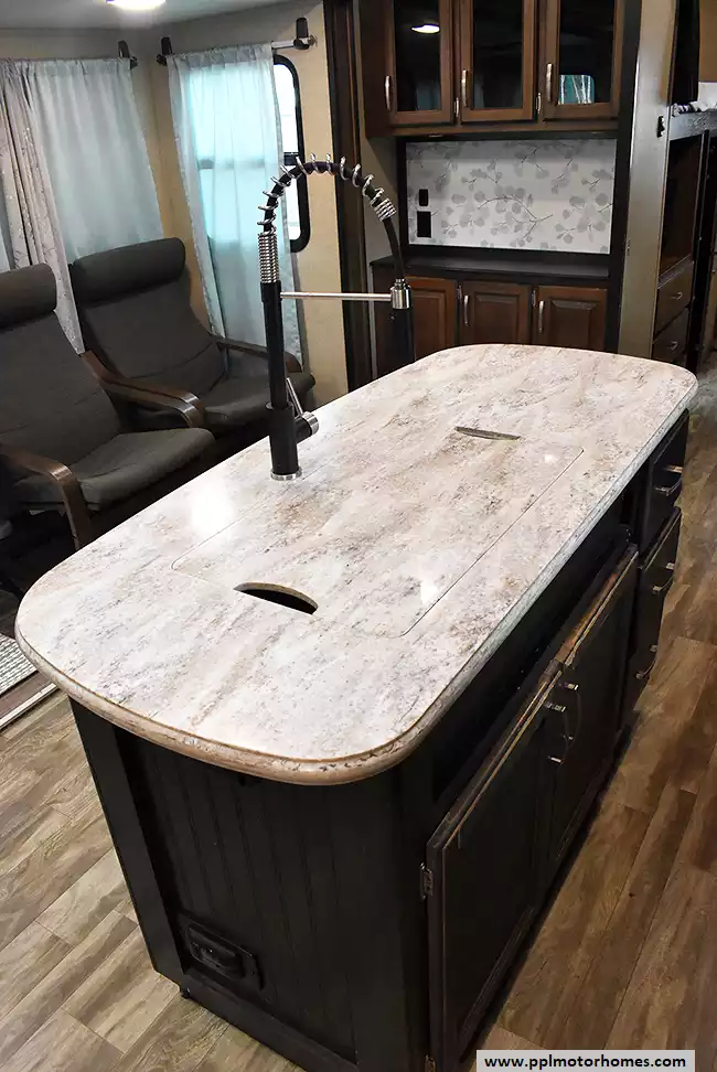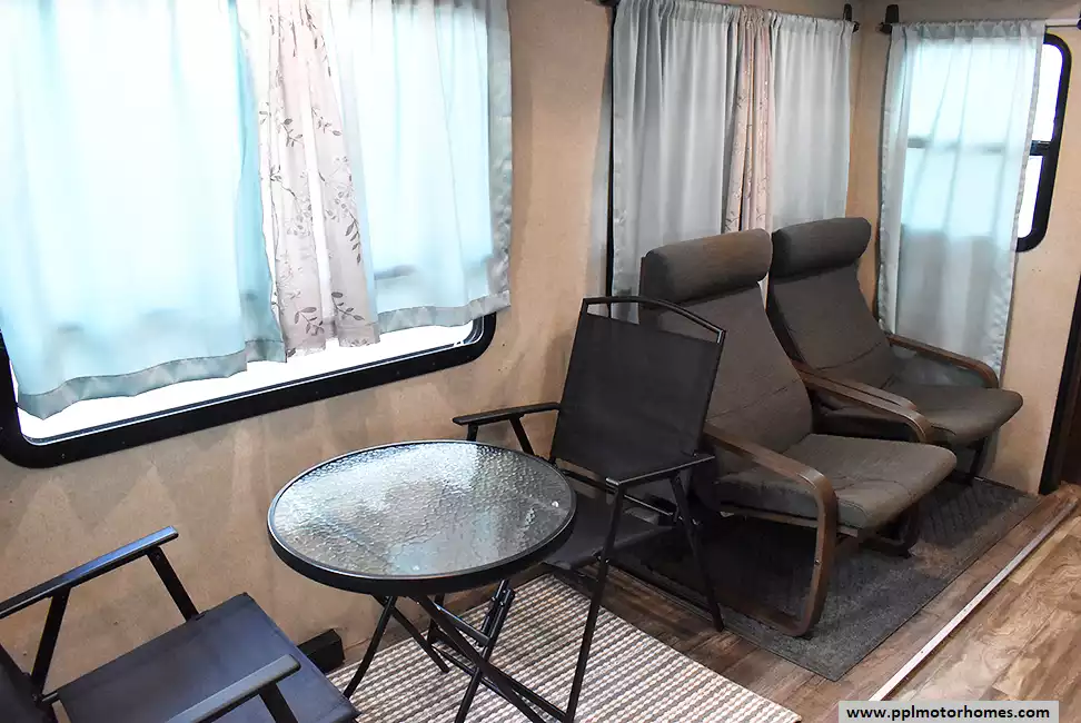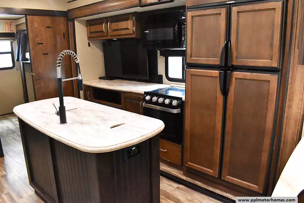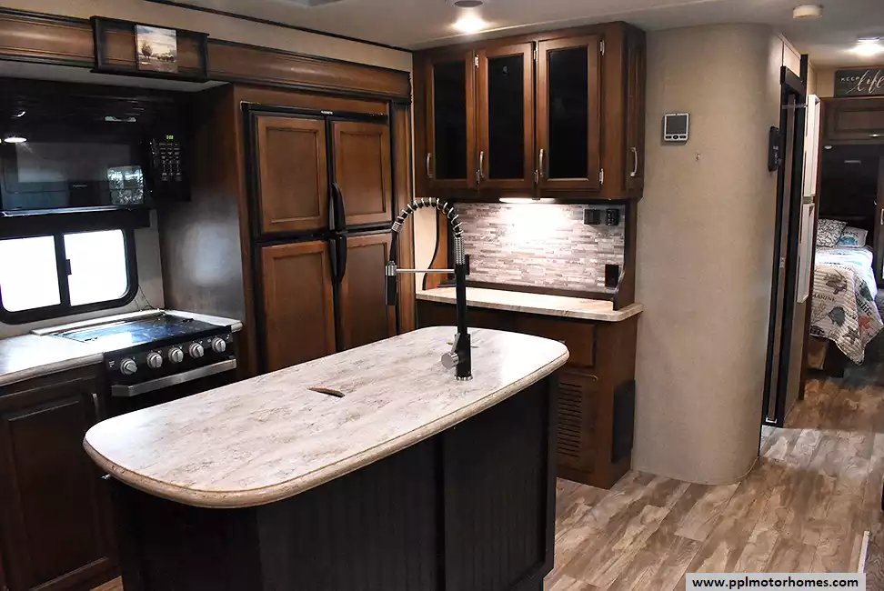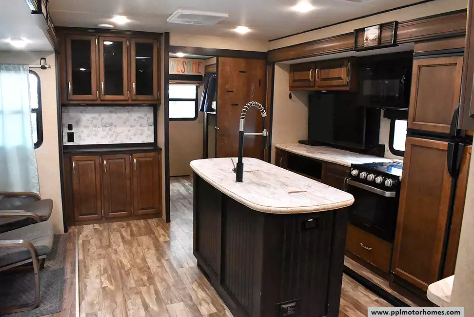 This well-maintained travel trailer has been enhanced with MorRyde suspension, heavy-duty axles, and disc brakes, all upgraded for a smoother, safer towing experience.Inside, you'll find a spacious and functional layout perfect for family adventures or full-time living.Features include:Large kitchen island with ample counter space