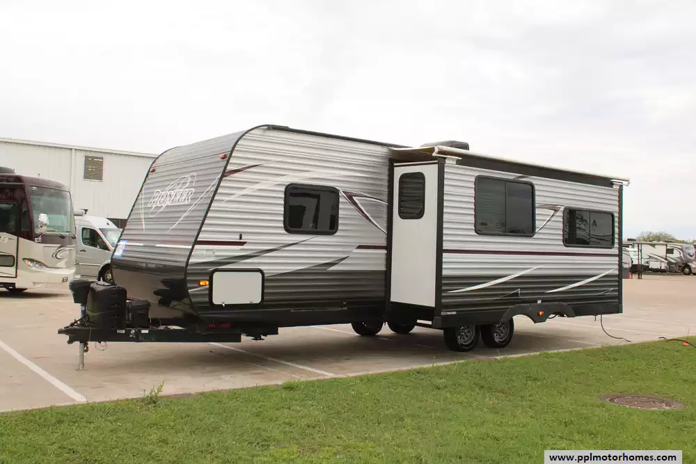 This 2018 Pioneer by Heartland 250RL is a well-designed and versatile travel trailer that offers comfort,convenience,and affordability for travelers seeking adventure on the road.Features Include...Electric Tongue Jack, 1 Slide-out, Double Door Gas/110v Dometic Refrigerator,Back Up Camera and Monitor, Automatic Main Awning And Slide Awning, Outside Speakers, TV, DVD Player, Microwave, 3 Burner Range,and Oven.With its spacious interior, modern amenities,and durable construction,it's ready to accompany you on countless memorable journeys.