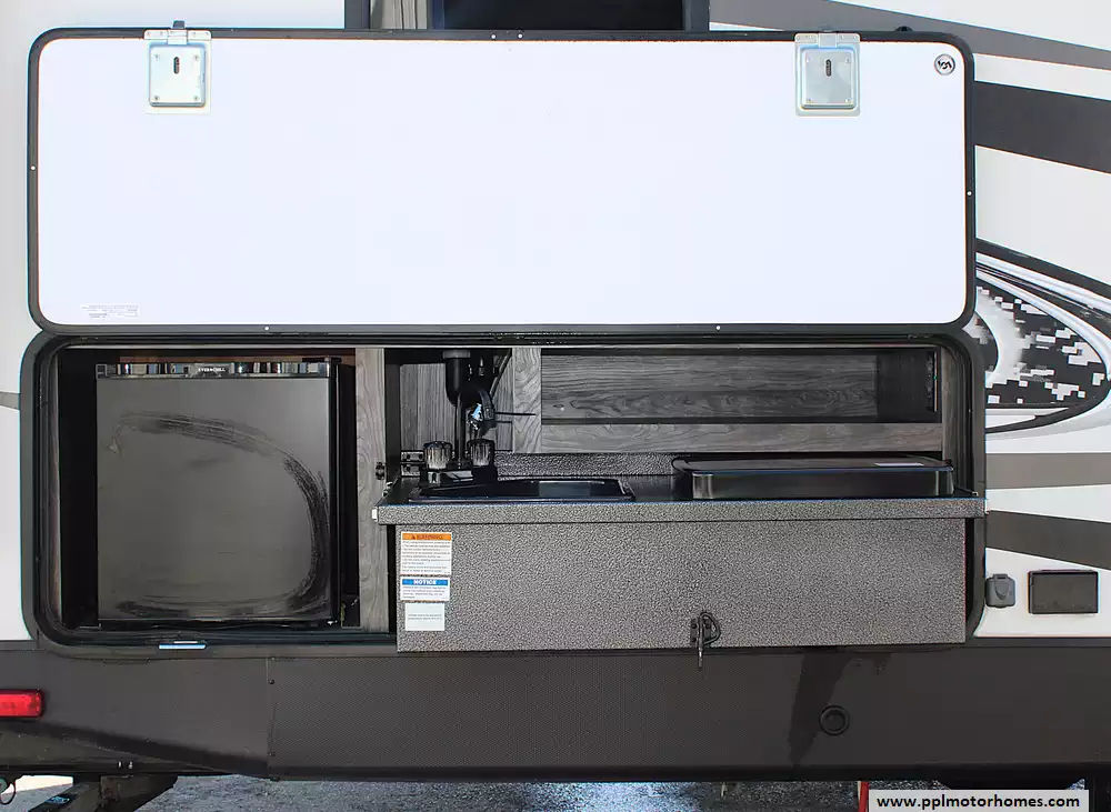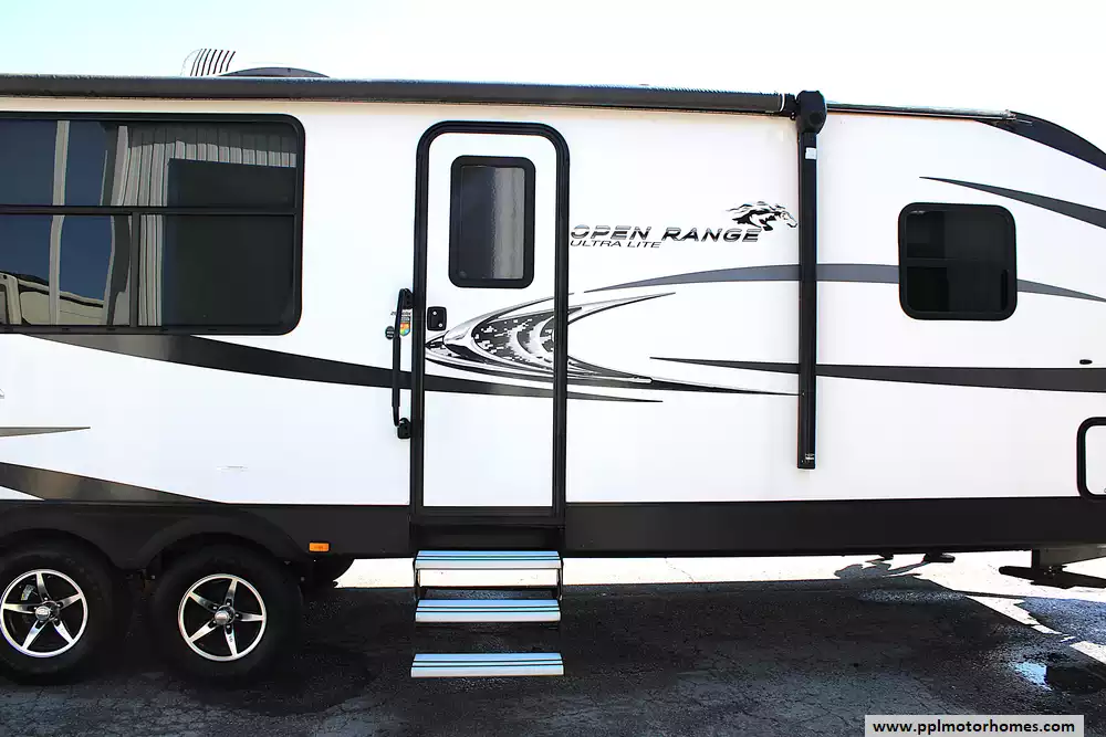 At just under 6,000 lbs dry weight, the 2804RK is towable by a properly equipped half-ton truck, though a three-quarter-ton vehicle will provide an even smoother and more confident towing experience. With its lightweight design, generous tank capacities, power awning, and pass-through storage, this travel trailer is ready for weekend getaways or extended stays. If you're looking for a clean, well-designed couples coach with room to entertain, the Open Range 2804RK delivers in every way.