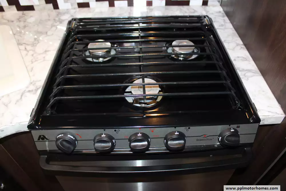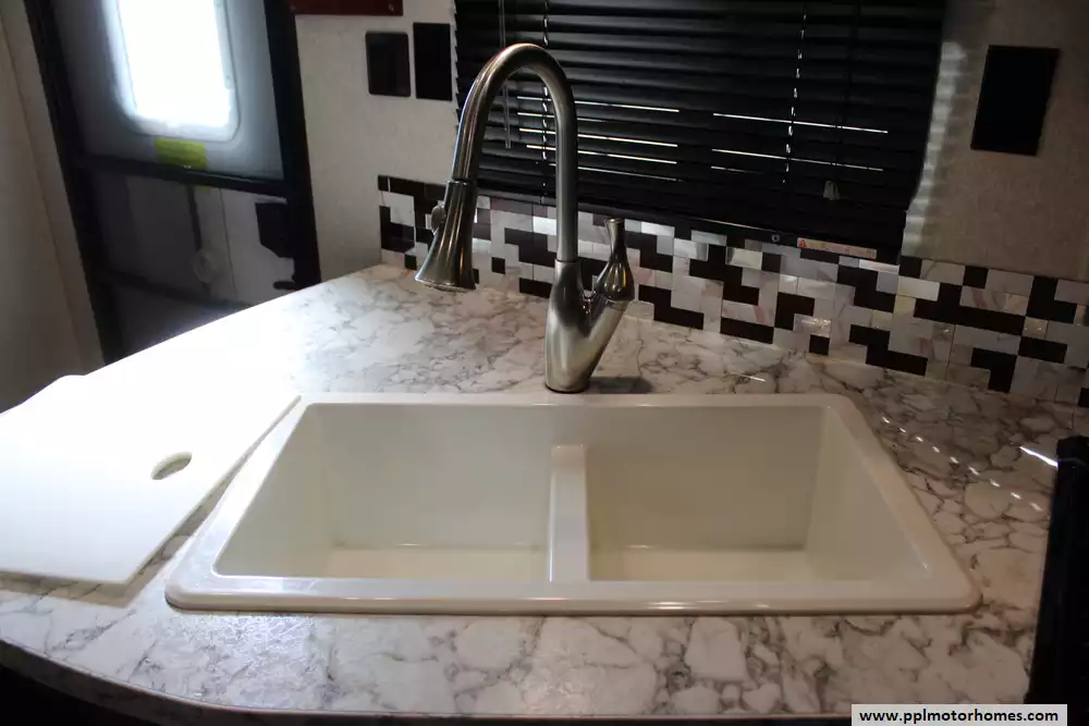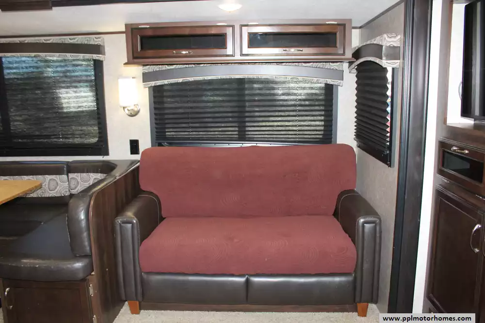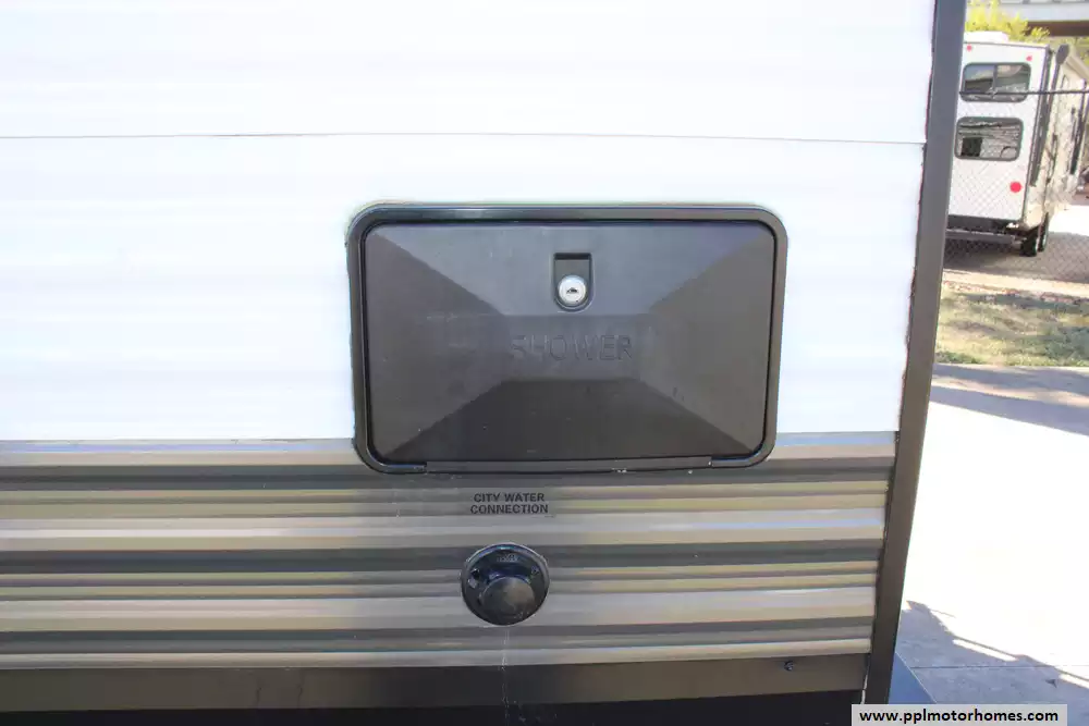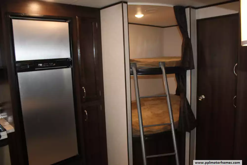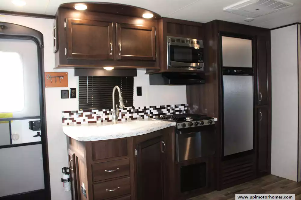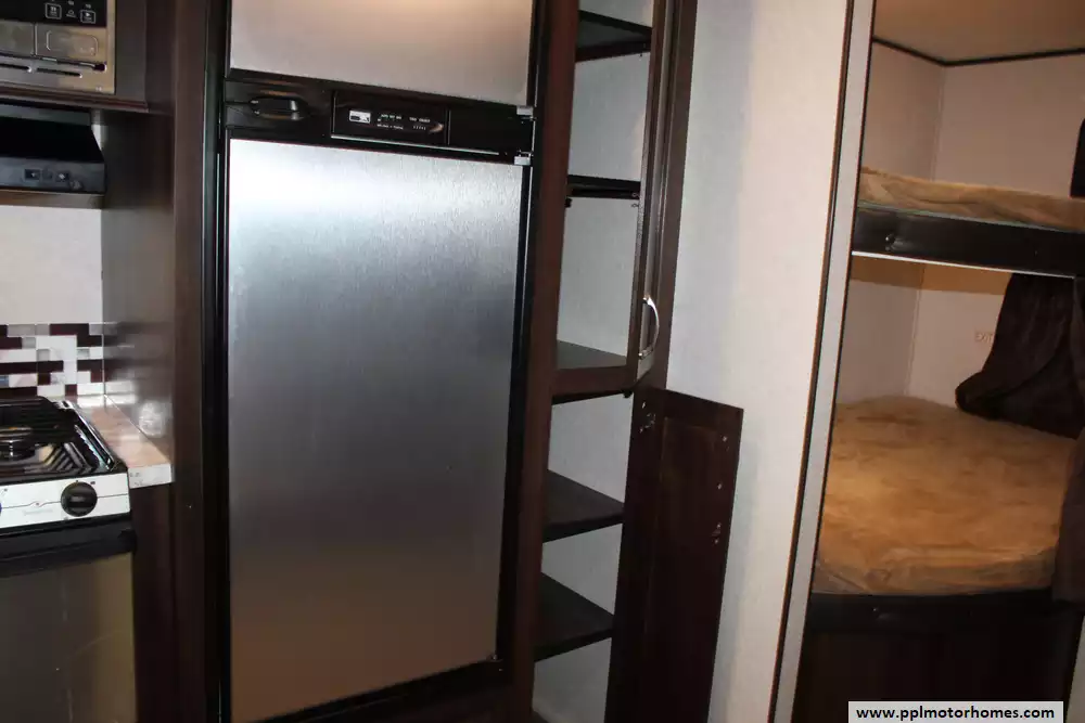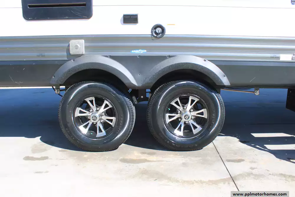 Specs: Length: 34.2 ft., Width: 8 ft., Height: 11.08 ft., Interior Height: 6.75 ft., Payload Capacity: 2,450 lbs., Total Fresh Water Tank Capacity: 76 gal., Total Gray Water Tank Capacity: 78 gal., Total Black Water Tank Capacity: 78 gal.