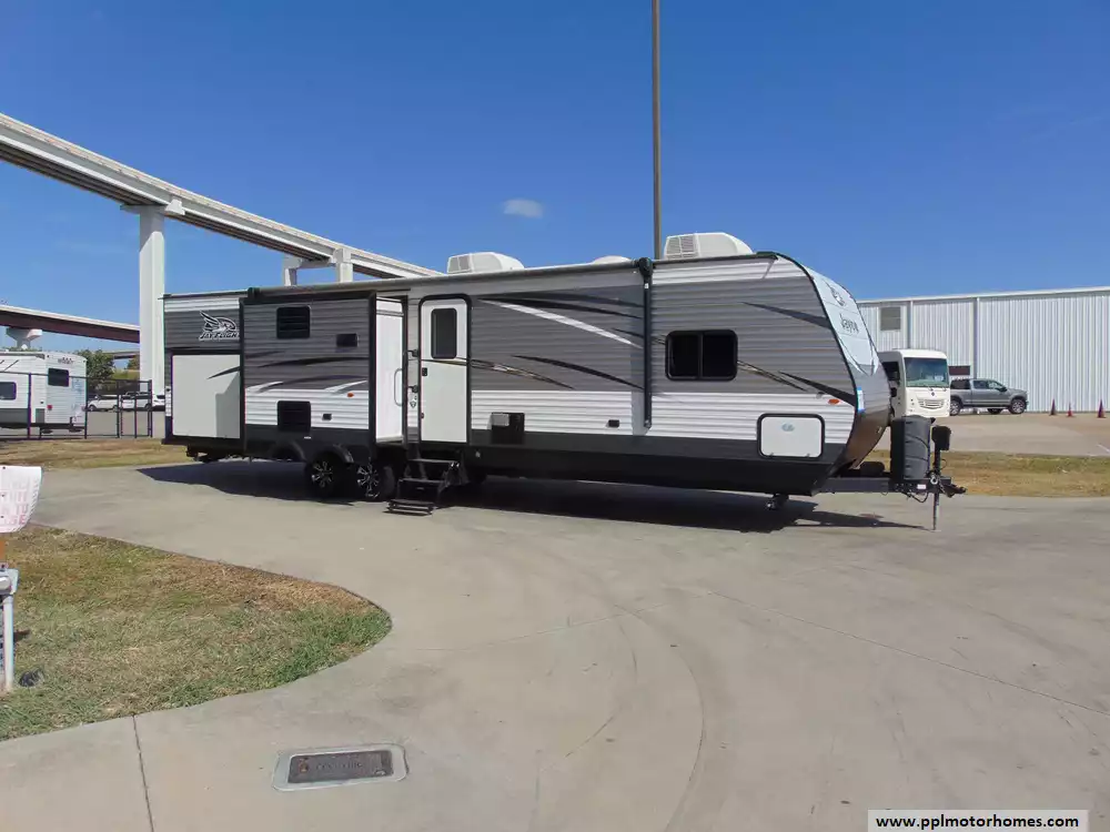 This 2018 Jayco Jay Flight 33RBTS is a spacious and well-designed travel trailer, ideal for families or large groups.The exterior is sleek and durable, with aluminum siding,a one-piece seamless roof,and an aerodynamic front profile that enhances towing efficiency.Features Include...Electric Tongue Jack, 3 Slide-outs, 1 Non-Ducted And 1 Ducted Air Conditioner, Double Door Gas/110v Norcold Refrigerator, Automatic Main Awning, Outside Speakers, 3 TVs, DVD Player, Outside Shower, Microwave, 3 Burner Range,and Oven.Overall,this travel trailer combines comfort,functionality,and durability,making it a great option for extended trips or full-time living.