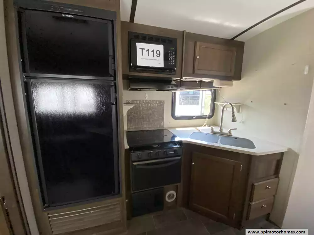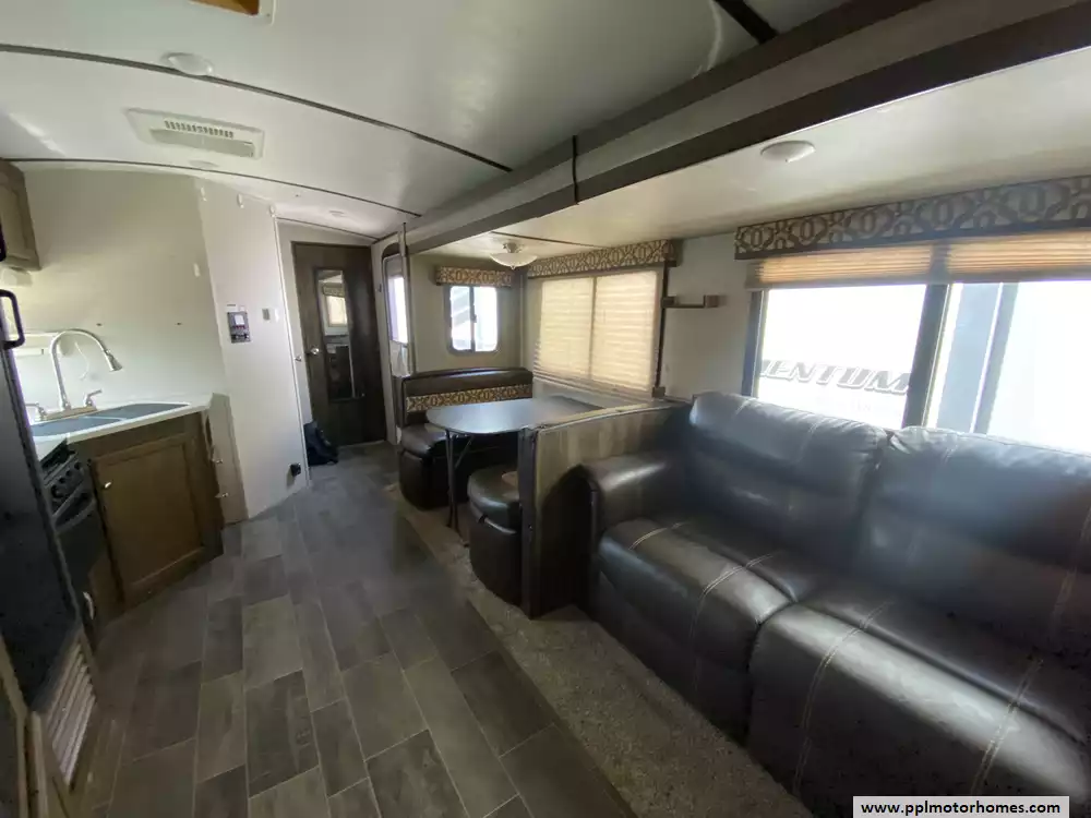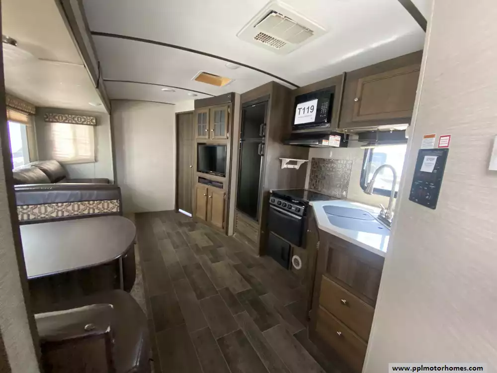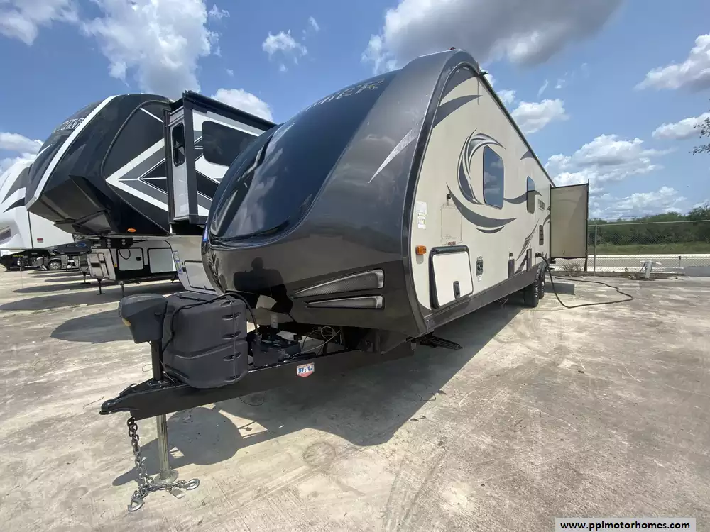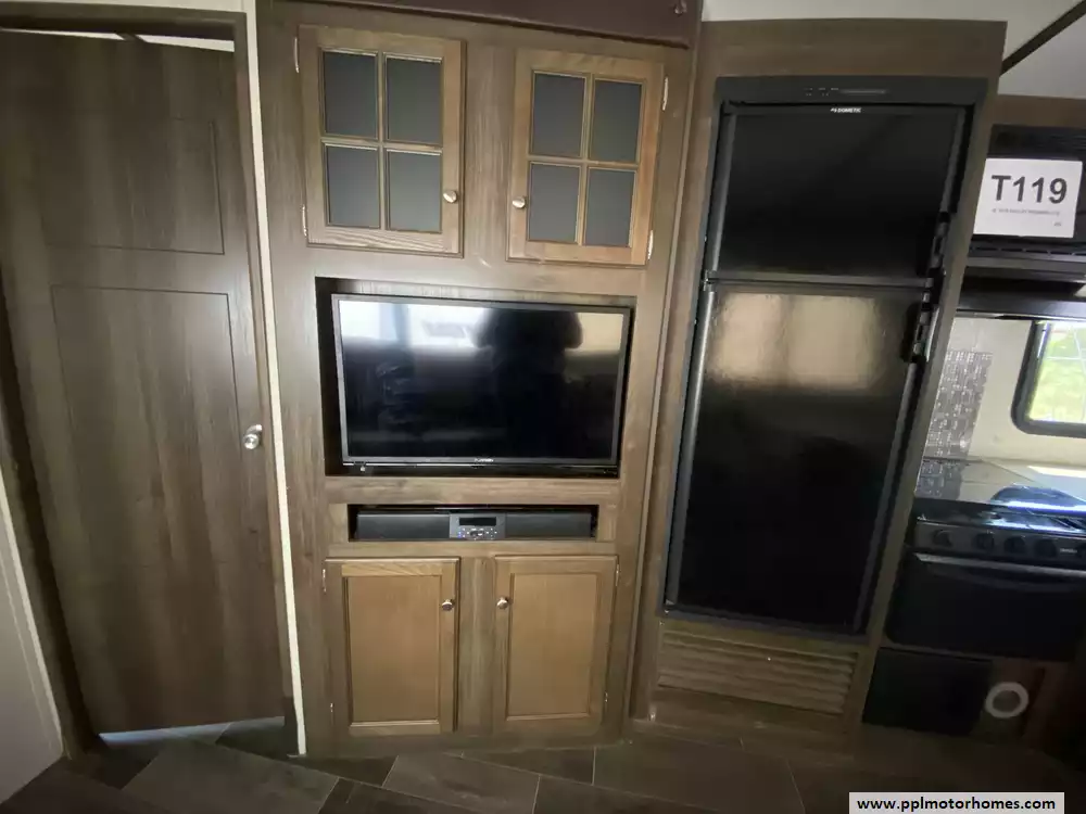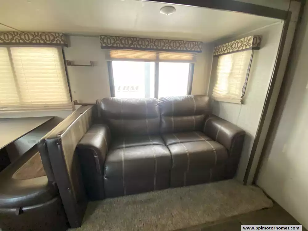 This 2018 Bullet Premier Lite 31BKPR has an Electric Tongue Jack, 2 Slide-outs, 1 Non-Ducted And 1 Ducted Air Conditioner, Double Door Gas/110v Dometic Refrigerator, Automatic Main Awning, Outside Speakers, TV, Outdoor Kitchen, Outside Shower, Microwave, 3 Burner Range, Oven